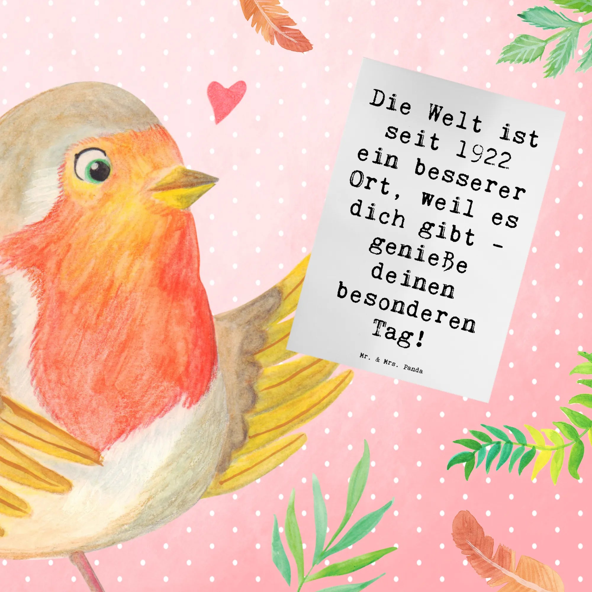 Die Mr. & Mrs. Panda Kollektion begeistert nicht nur mit ihren bezaubernden Motiven, sondern auch mit der Botschaft, die sie transportiert: Freude, Liebe und Wertschätzung. Suche nicht weiter nach dem perfekten Geschenk für deinen liebsten Menschen - die Grußkarte "1922 Geburtstag" ist die ideale Wahl, um deine besten Wünsche zu überbringen. Lass uns gemeinsam den besonderen Tag feiern und unvergessliche Erinnerungen schaffen! Versende deine liebevollen Glückwünsche mit einem Lächeln und bringe die Augen deiner Liebsten zum Strahlen. Diese Karte ist mehr als nur ein Stück Papier; sie ist ein Zeichen deiner Zuneigung und Wertschätzung, das lange in Erinnerung bleibt.