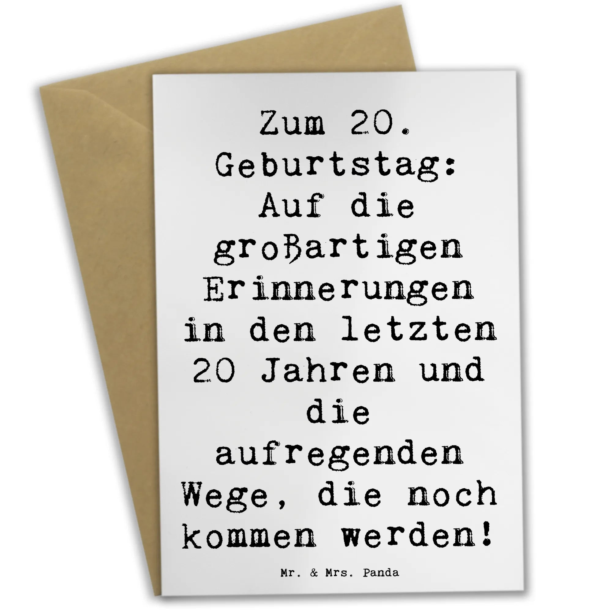 Egal ob als Geburtstagsgeschenk, für Einladungen oder einfach nur so – diese Karte ist ein Herzstück für jeden, der seinen 20. Geburtstag feiert und den Tag unvergesslich machen möchte. Verwandle den 20. Geburtstag in ein außergewöhnliches Erlebnis mit der perfekten Grußkarte von Mr. & Mrs. Panda!