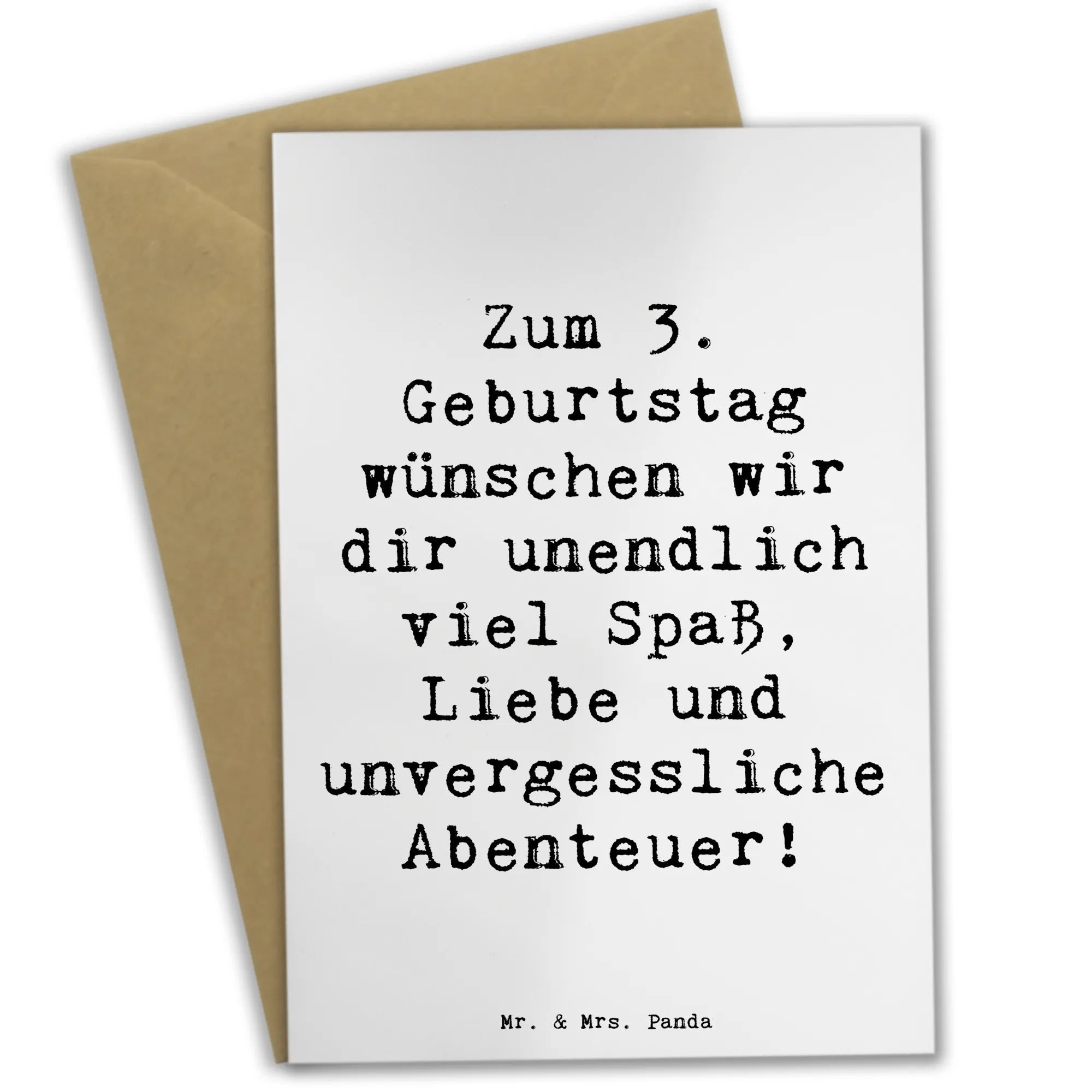 Die Grußkarte zum 3. Geburtstag von Mr. & Mrs. Panda ist das perfekte Geschenk für jeden kleinen Geburtstagskind. Ob als Einladungskarte, Glückwunschkarte oder einfach nur als liebevolle Nachricht – diese Karte bringt Freude und Lächeln. Auf der Vorderseite prangt der liebevolle Spruch: "Zum 3. Geburtstag wünschen wir dir unendlich viel Spaß, Liebe und unvergessliche Abenteuer!" und sorgt so sofort für gute Laune.