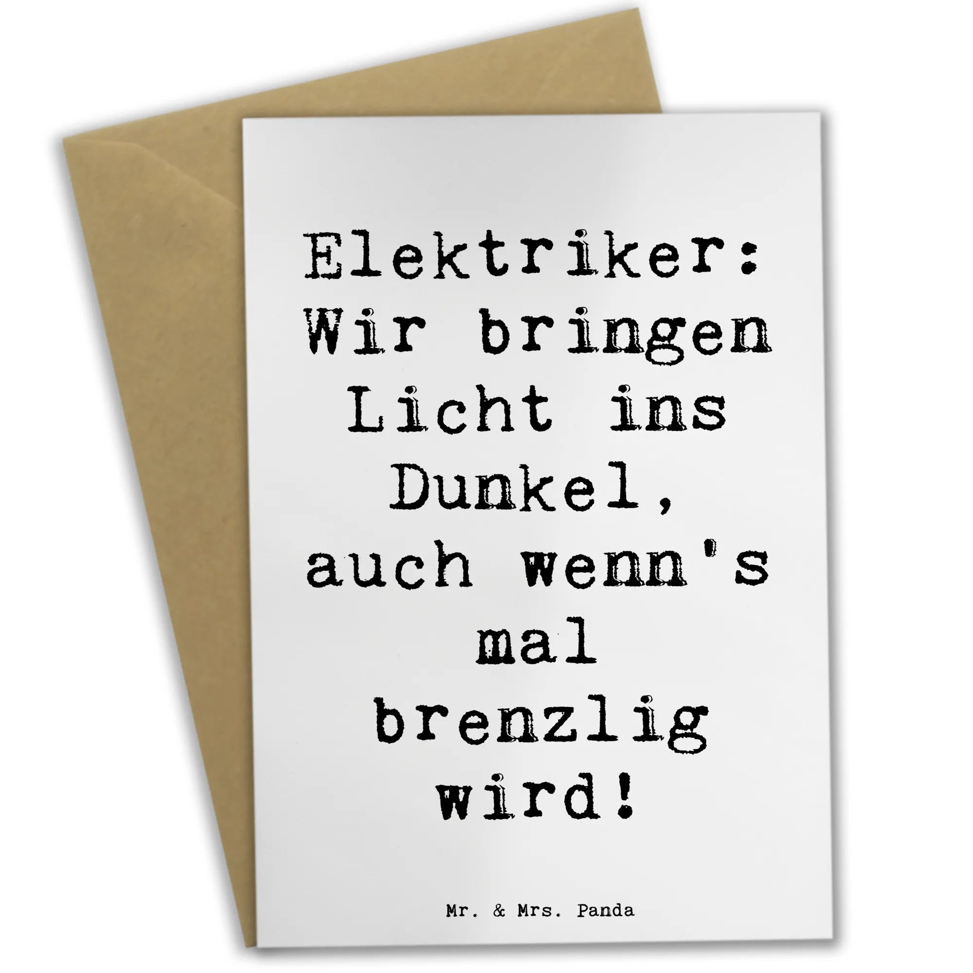 Die wunderschöne Grußkarte "Elektriker: Wir bringen Licht ins Dunkel, auch wenn's mal brenzlig wird!" aus der Kollektion Berufe von Mr. & Mrs. Panda ist das perfekte Geschenk für all die Lichtbringer unter uns!