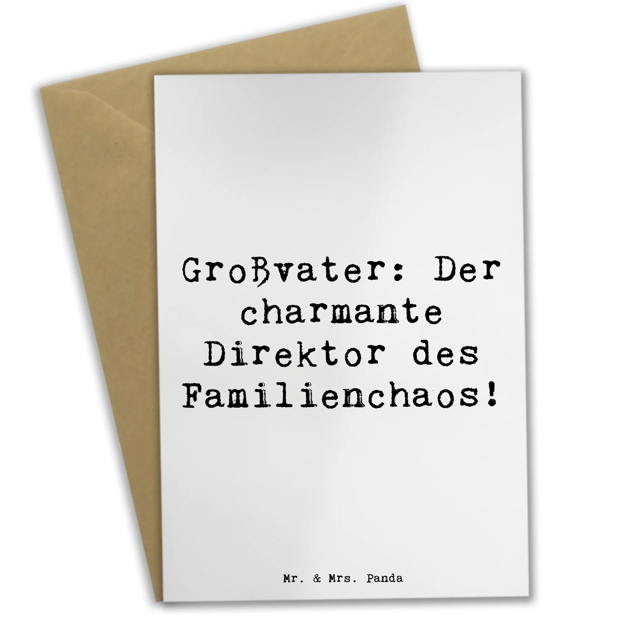 Die Grußkarte für deinen Großvater von Mr. & Mrs. Panda ist das perfekte Geschenk, um deine Gefühle auszudrücken! Egal, ob du ihm zu seinem Geburtstag, zu einem Familienfest oder einfach nur als Dankeschön eine Freude machen möchtest, diese Karte ist genau das richtige. Mit dem Spruch "Großvater: Der charmante Direktor des Familienchaos!" bringt sie garantiert ein Lächeln auf sein Gesicht.