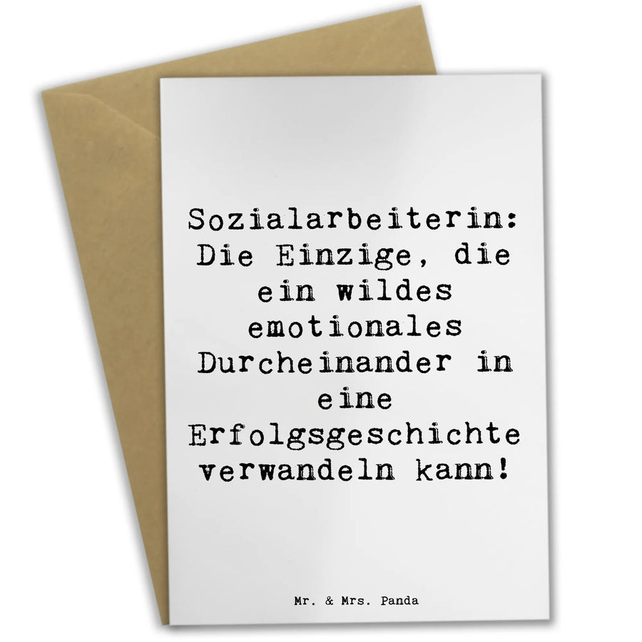 Die Grußkarte "Sozialarbeiterin" von Mr. & Mrs. Panda ist das perfekte Geschenk für alle, die sich in diesem wunderbaren Beruf engagieren. Mit dem bezaubernden Spruch "Sozialarbeiterin: Die Einzige, die ein wildes emotionales Durcheinander in eine Erfolgsgeschichte verwandeln kann!" wird diese Karte zu einer liebevollen Hommage an die Herausforderungen und Erfolge, die Sozialarbeiter täglich meistern.
