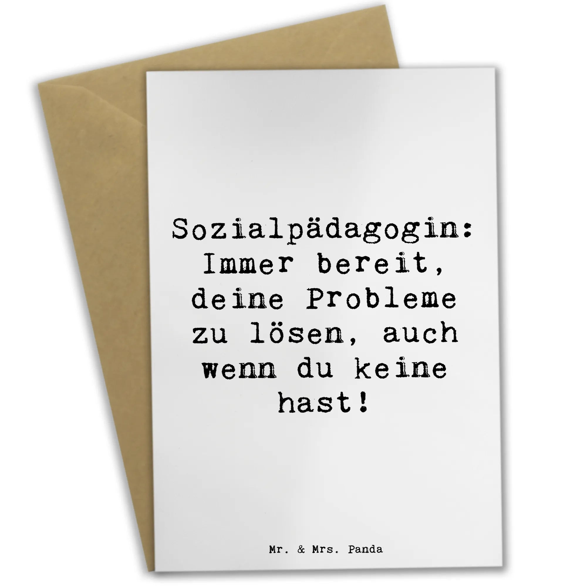 Suchst du nach einem perfekten Geschenk für eine Sozialpädagogin? Dann ist die liebevoll gestaltete Grußkarte von Mr. & Mrs. Panda genau das Richtige! Mit dem charmanten Spruch "Sozialpädagogin: Immer bereit, deine Probleme zu lösen, auch wenn du keine hast!" bringt diese Karte ein Lächeln in jedes Gesicht.