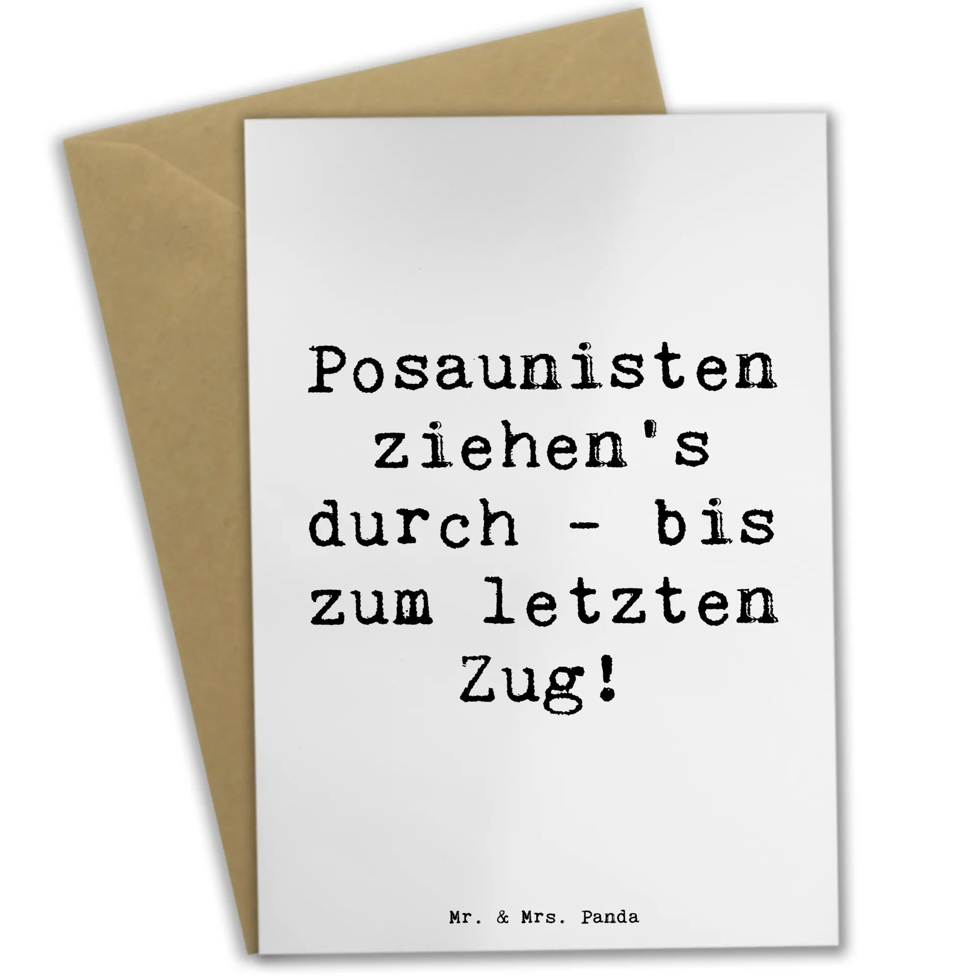 Mit einem charmanten Spruch "Posaunisten ziehen's durch - bis zum letzten Zug!" auf der Vorderseite wird es dem Empfänger sicher ein Lächeln ins Gesicht zaubern. Diese Karte eignet sich hervorragend für verschiedene Anlässe, sei es zum Geburtstag, zur Hochzeit oder einfach als kleine Aufmerksamkeit für zwischendurch. Ideal auch als Einladungskarte für ein Musikevent oder eine Feier!