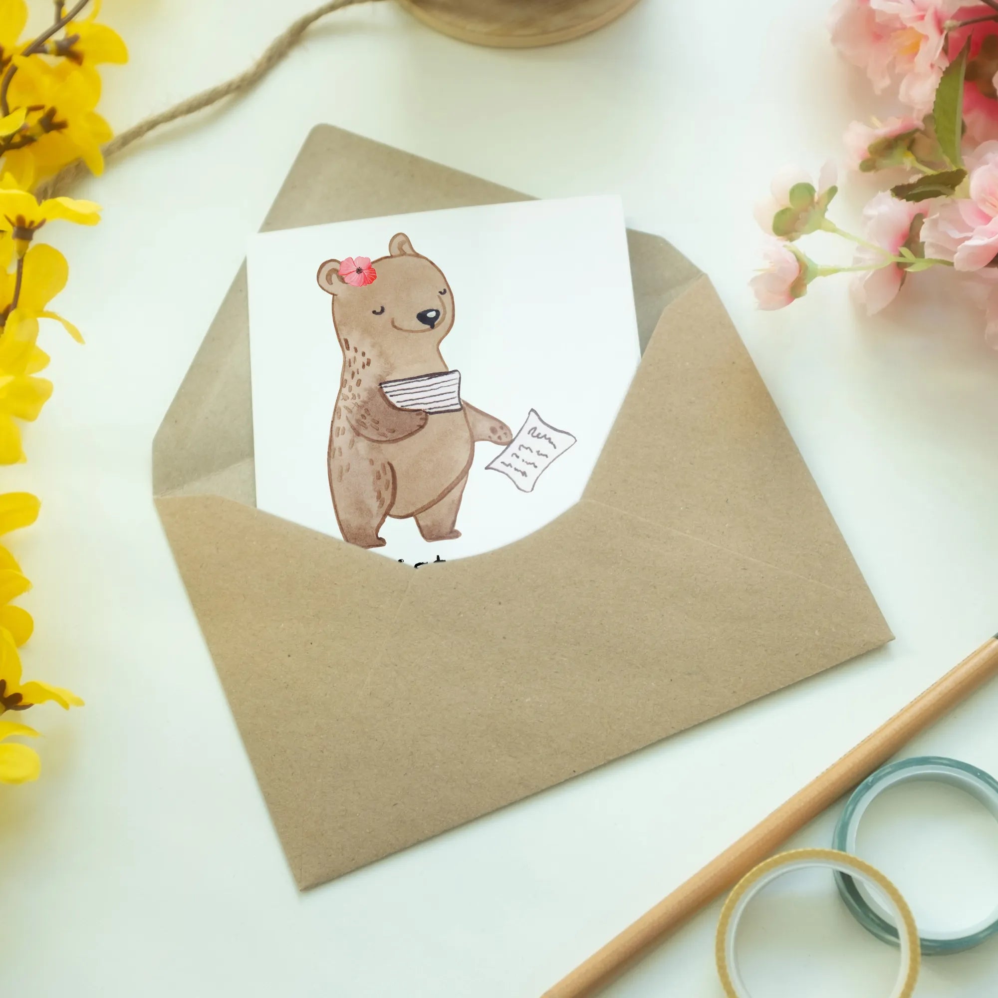 Die Grußkarte gehört zur kreativen Berufe Kollektion von Mr. & Mrs. Panda, die sorgfältig und mit viel Liebe zum Detail gestaltet wurde. Ideal für diverse Anlässe wird sie zu einem ganz besonderen Geschenk - sei es zum Berufsabschied, zum Jubiläum oder einfach um einen lieben Kollegen zu überraschen. Du kannst die Karte auch hervorragenden an deine Mitarbeiter verschenken, um ihnen zu zeigen, wie sehr du ihre Arbeit wertschätzt. Die matte Innenseite ermöglicht es dir, eine persönliche Botschaft oder Glückwünsche hinzuzufügen und so die Karte individuell zu gestalten.