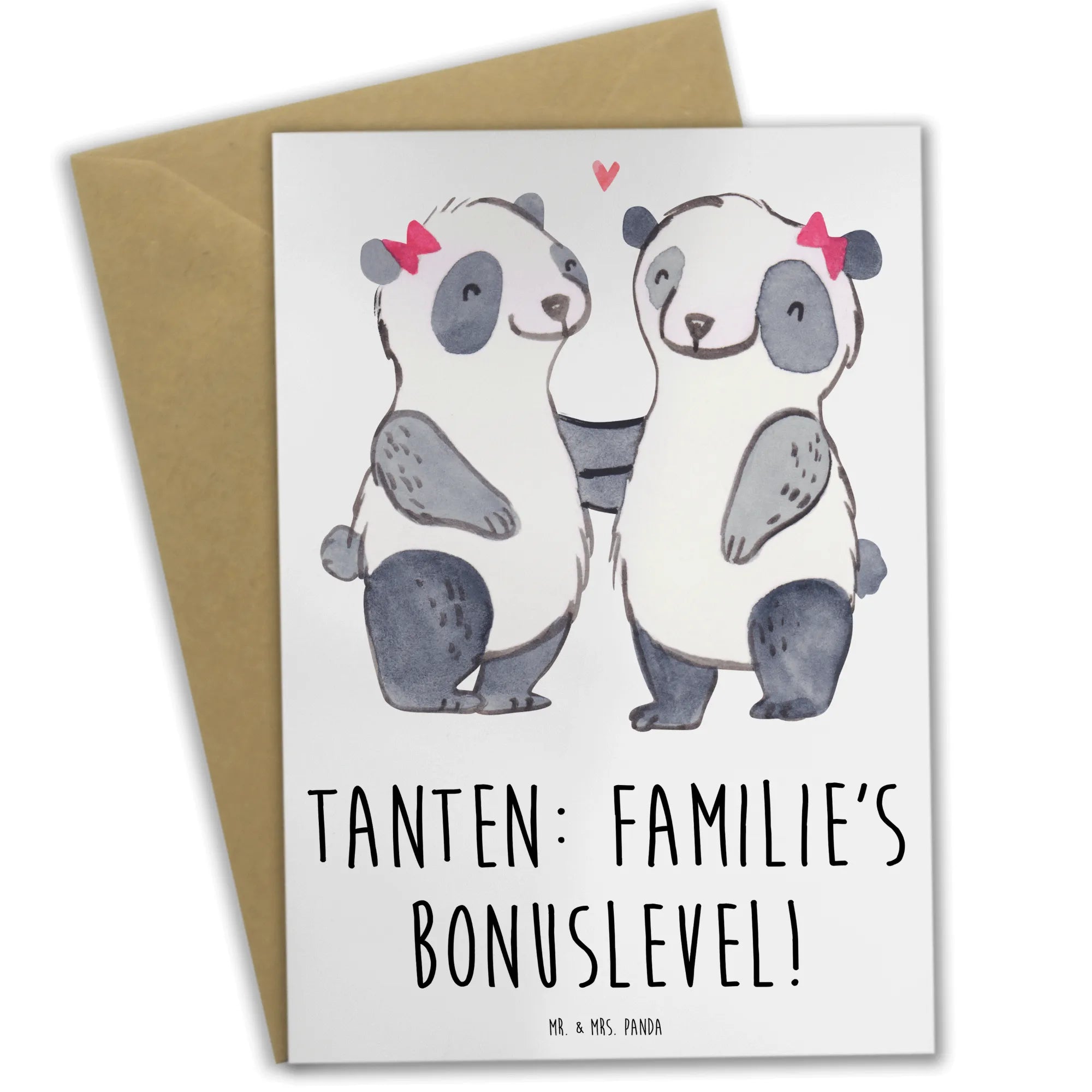 Mit den Maßen von 148 mm x 105 mm passt diese Grußkarte in jeden Umschlag und ist somit perfekt für jeden Anlass geeignet. Die spezielle Kollektion von Mr. & Mrs. Panda feiert die Familie und die Verwandtschaft – eine Hommage an alle besonderen Momente, die wir miteinander teilen können. Diese Grußkarte ist ein kleines, liebevolles Geschenk, das sicher ein Lächeln auf das Gesicht deiner Tante zaubern wird.