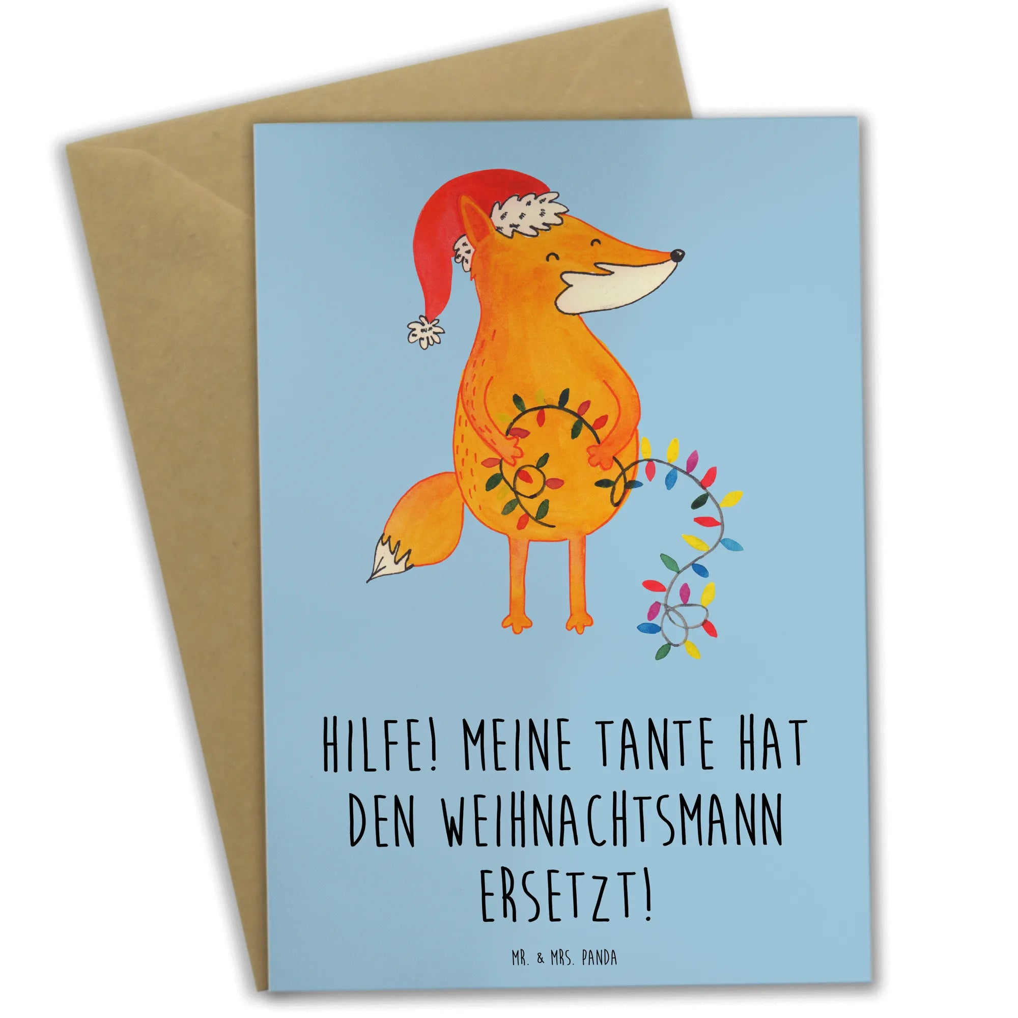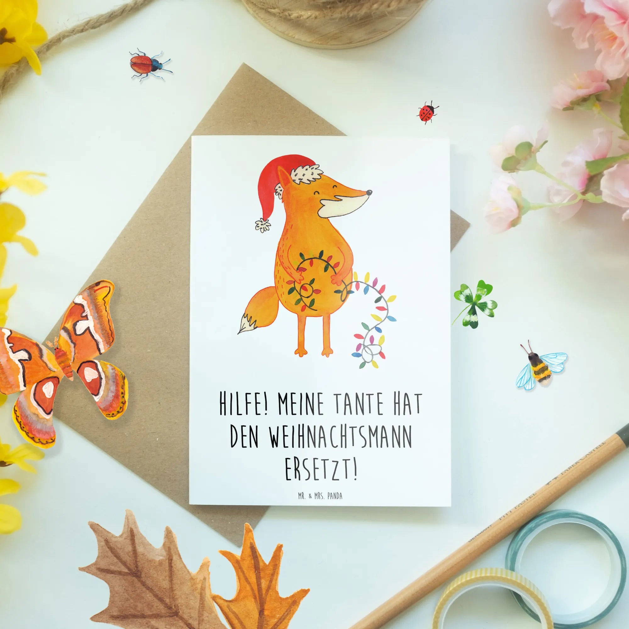 Die Grußkarte "Hilfe! Meine Tante hat den Weihnachtsmann ersetzt!" von Mr. & Mrs. Panda ist das perfekte Geschenk für all die besonderen Momente im Familienleben. Mit ihrem charmanten Design und dem liebevollen Spruch wird sie schnell das Herz Deiner Tante erobern.