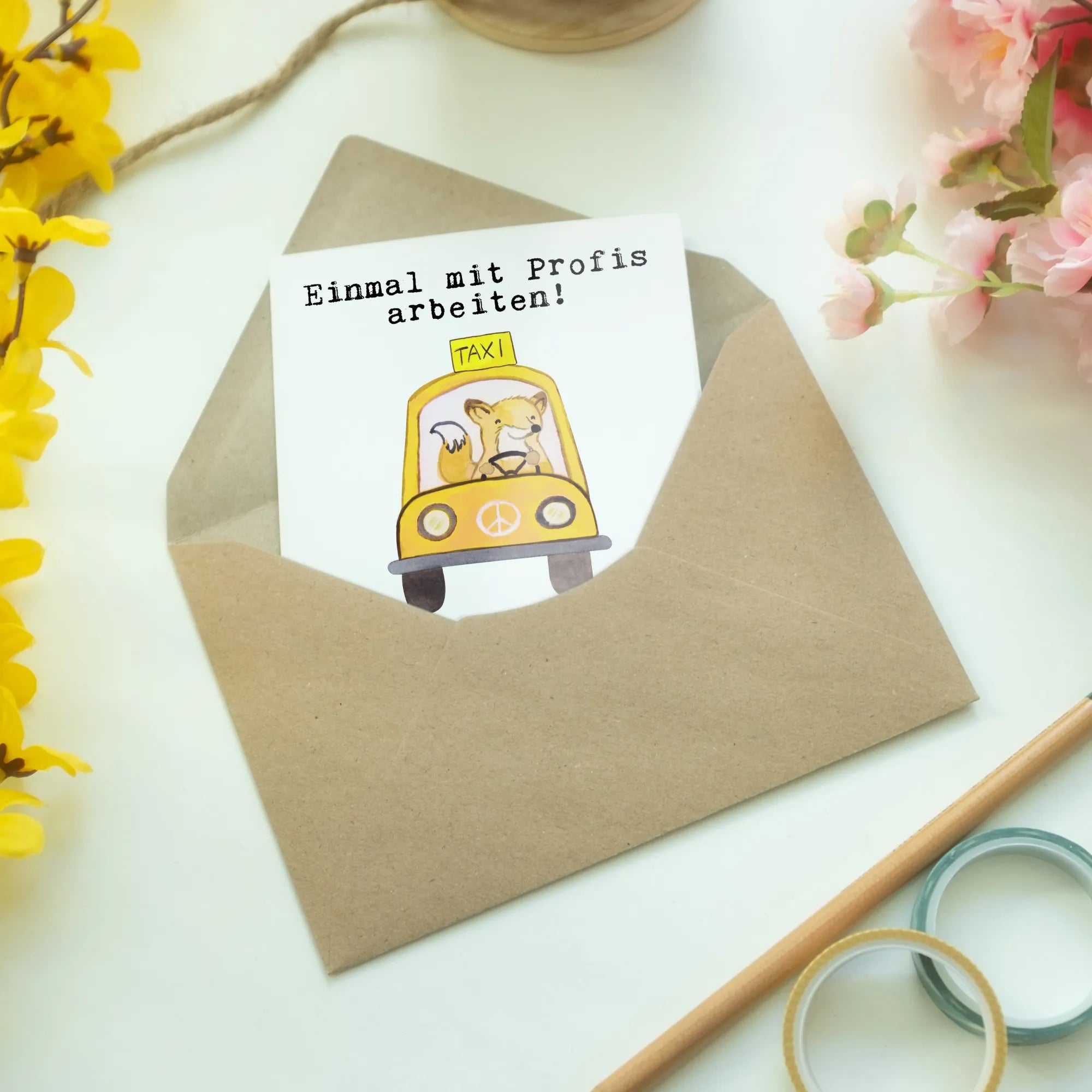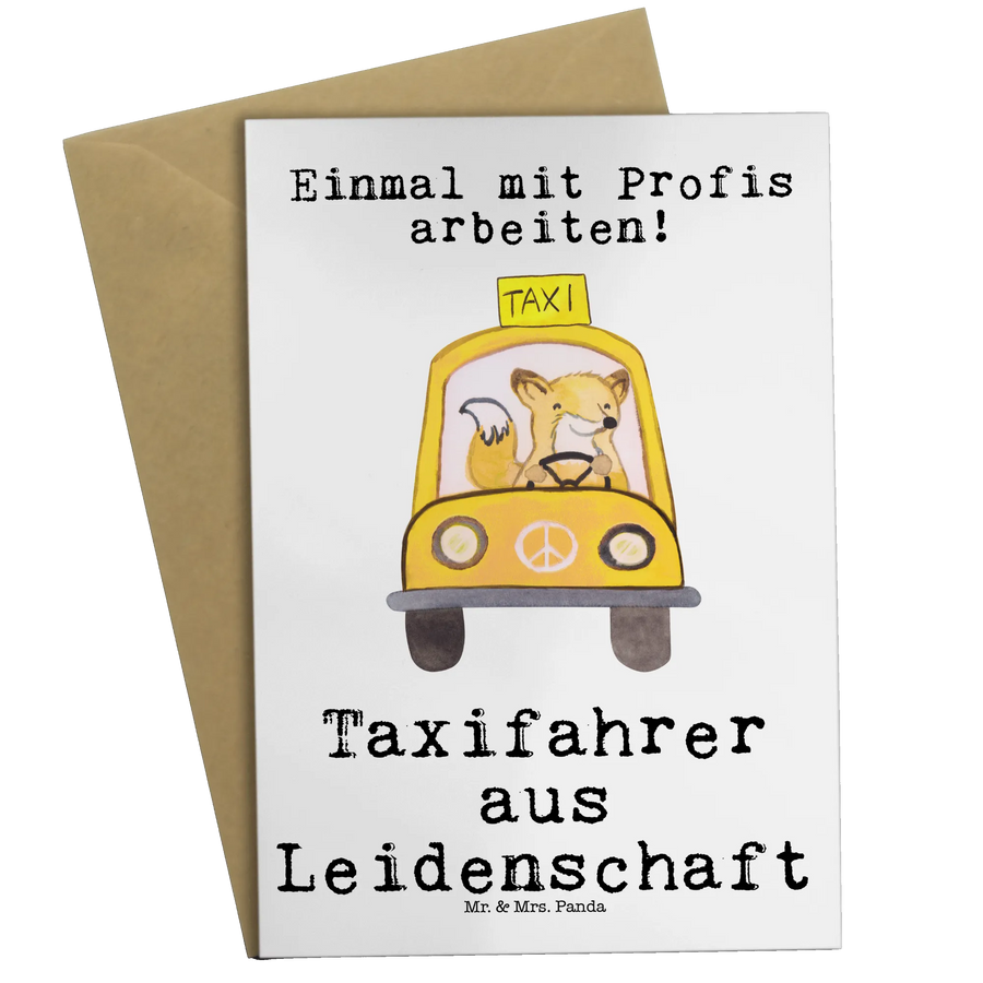 Die Grußkarte "Taxifahrer aus Leidenschaft" von Mr. & Mrs. Panda ist das perfekte Geschenk für alle, die den Beruf des Taxifahrers wertschätzen. Diese liebevoll gestaltete Klappkarte kommt aus der einzigartigen Kollektion "Berufe", die speziell dafür entworfen wurde, um Anerkennung und Dankbarkeit für Menschen zu zeigen, die in verschiedenen Berufen täglich ihr Bestes geben. Die Karte zeigt einen süßen Fuchs, der in einem gelben Taxi fährt, und bringt damit nicht nur ein Lächeln auf die Lippen, sondern eignet sich auch hervorragend als Einladungskarte oder Dankeschön-Karte für einen Abschied.