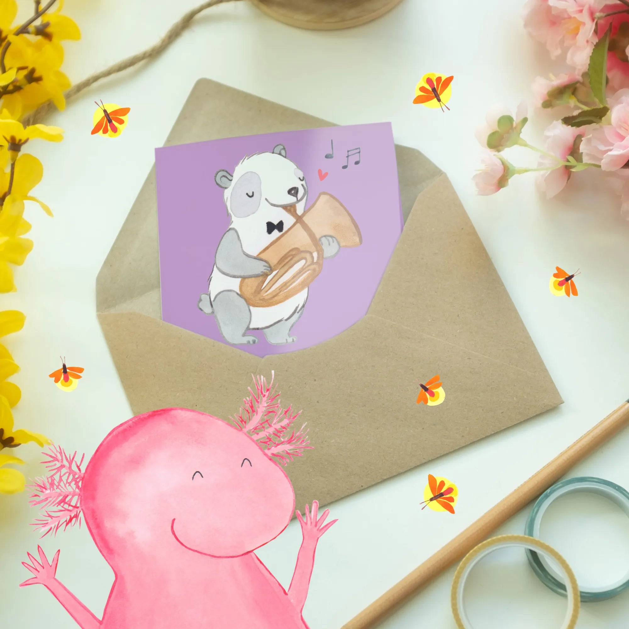 Jetzt zuschlagen und zur nächsten musikalischen Feier Freude verbreiten! Mit einem edlen Umschlag inklusive ist alles bereit für ein paar persönliche Worte – entdecke die Welt der Musik mit Mr. & Mrs. Panda!