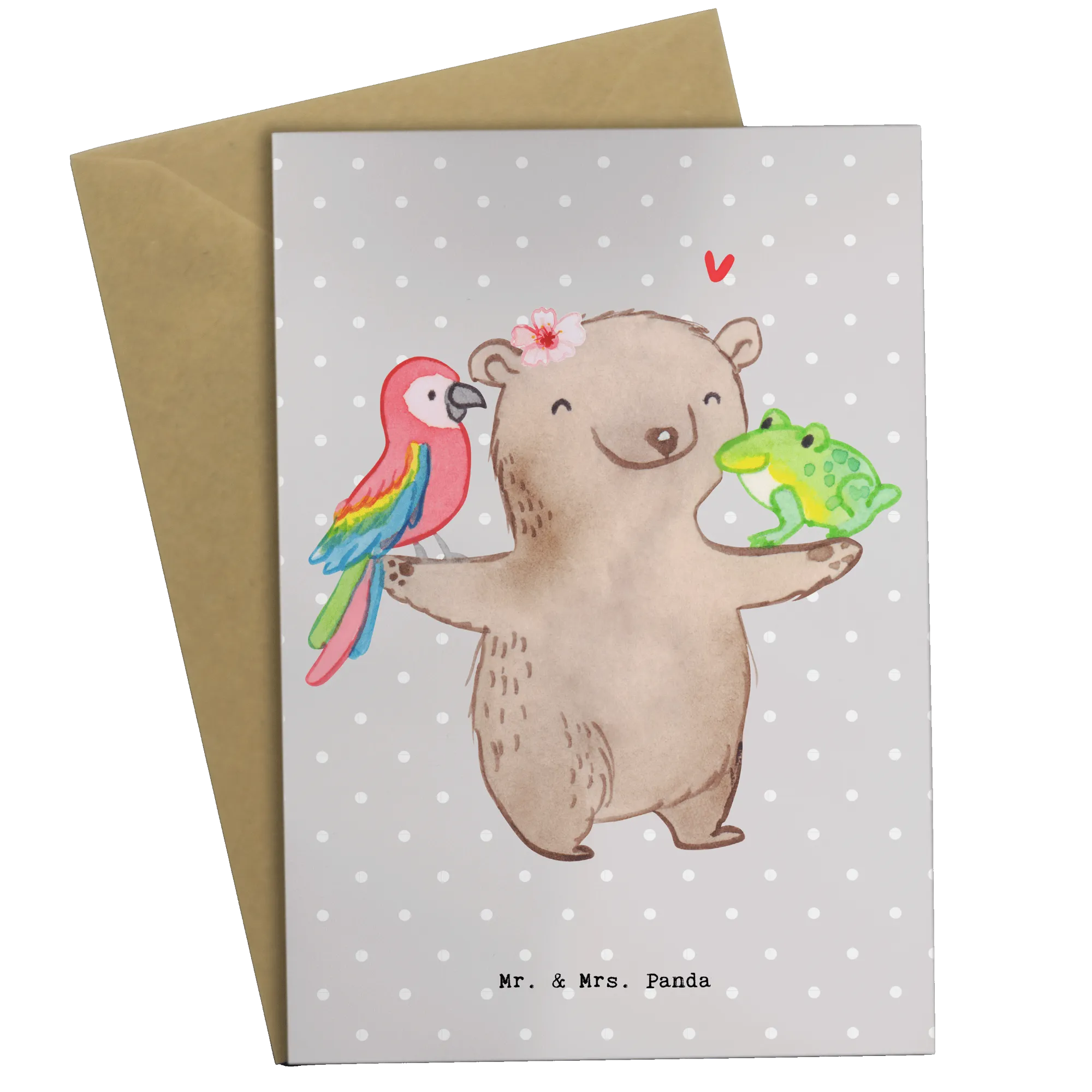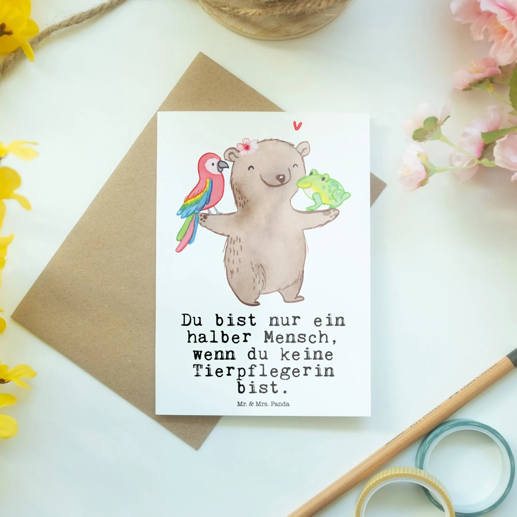 Unsere wunderschöne Grußkarte "Tierpflegerin mit Herz" aus der kreativen Berufe Kollektion von Mr. & Mrs. Panda ist der perfekte Weg, um Deinen Freunden, Kollegen oder Familienmitgliedern Danke zu sagen oder einfach nur, um ihnen eine Freude zu bereiten!