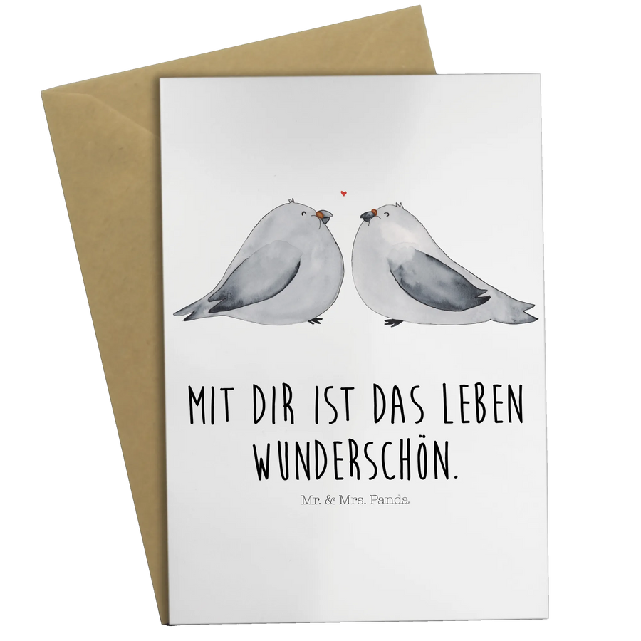 Entdecke die bezaubernde Grußkarte mit dem Motiv Turteltauben Liebe aus der Liebe Kollektion von Mr. & Mrs. Panda! Diese einzigartige Klappkarte, gestaltet aus hochwertigem Karton, zaubert nicht nur ein Lächeln ins Gesicht, sondern trägt auch eine liebevolle Botschaft, die das Herz höherschlagen lässt.