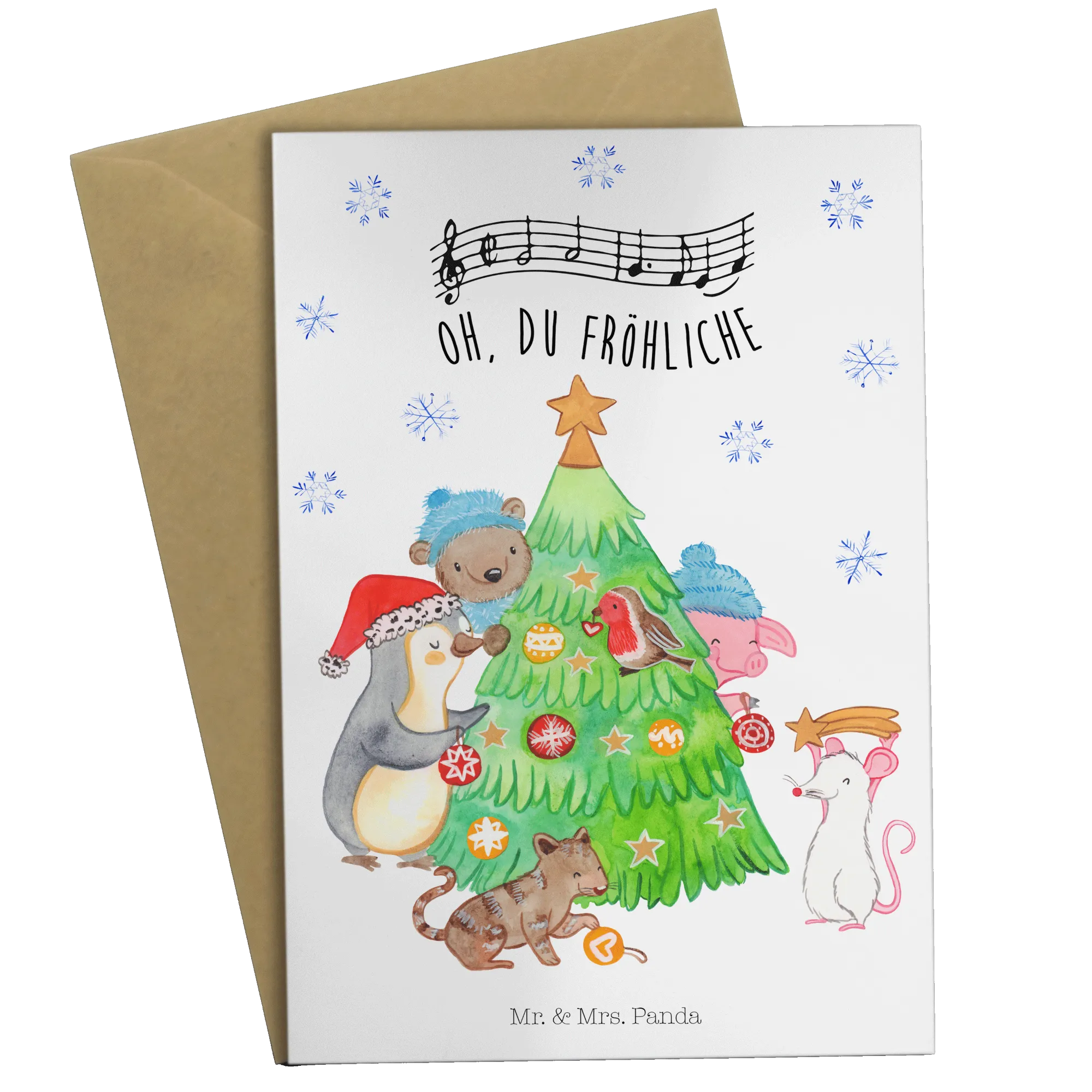 Wenn Du auf der Suche nach einer besonderen Karte bist, um das Fest der Liebe zu zelebrieren, ist diese Grußkarte genau das Richtige! Mach diese Weihnachtszeit unvergesslich und bereite Deinen Lieben eine Freude mit der Grußkarte "Weihnachtsbaum schmücken" von Mr. & Mrs. Panda. Die besten Grüße für Weihnachten sind nur einen Stift entfernt!