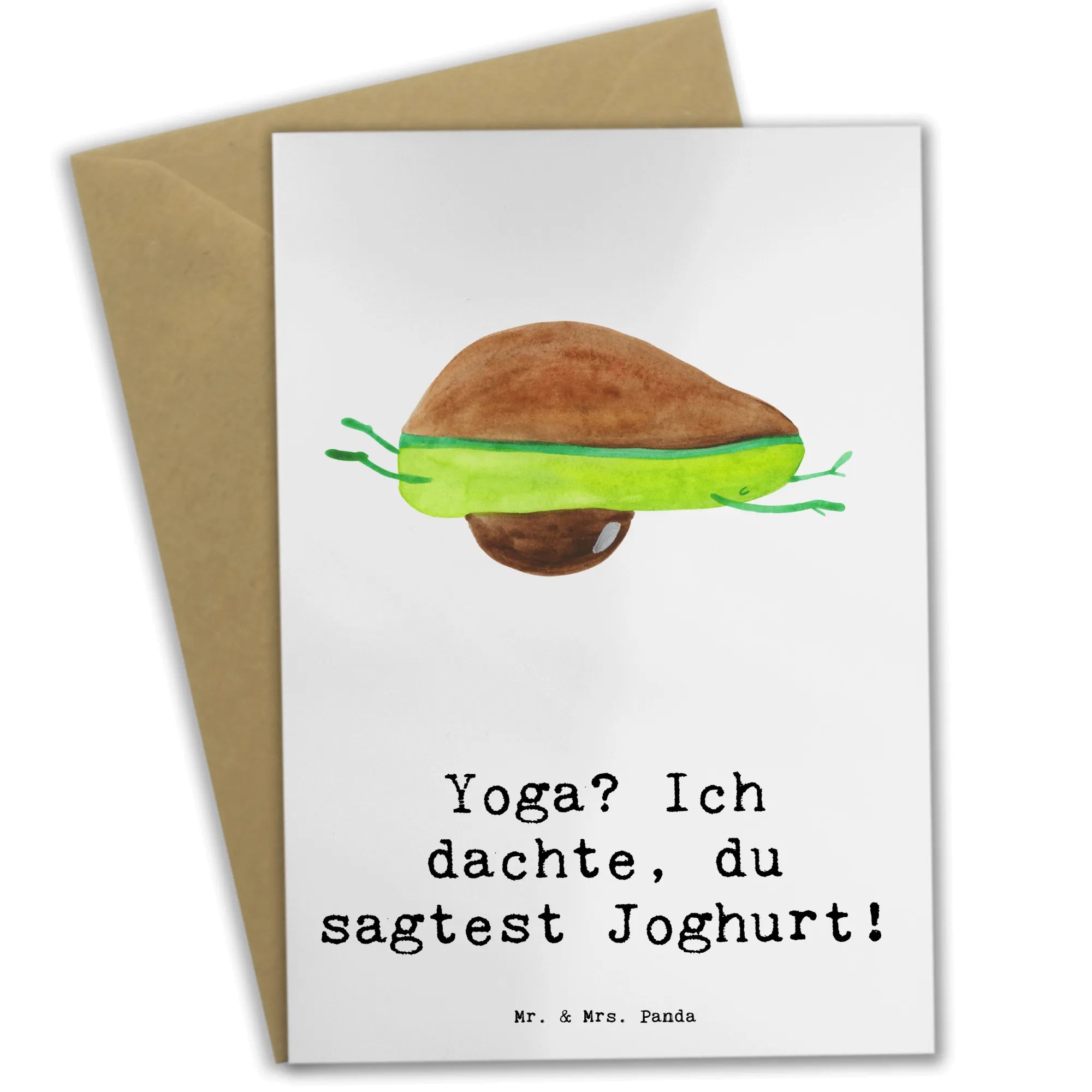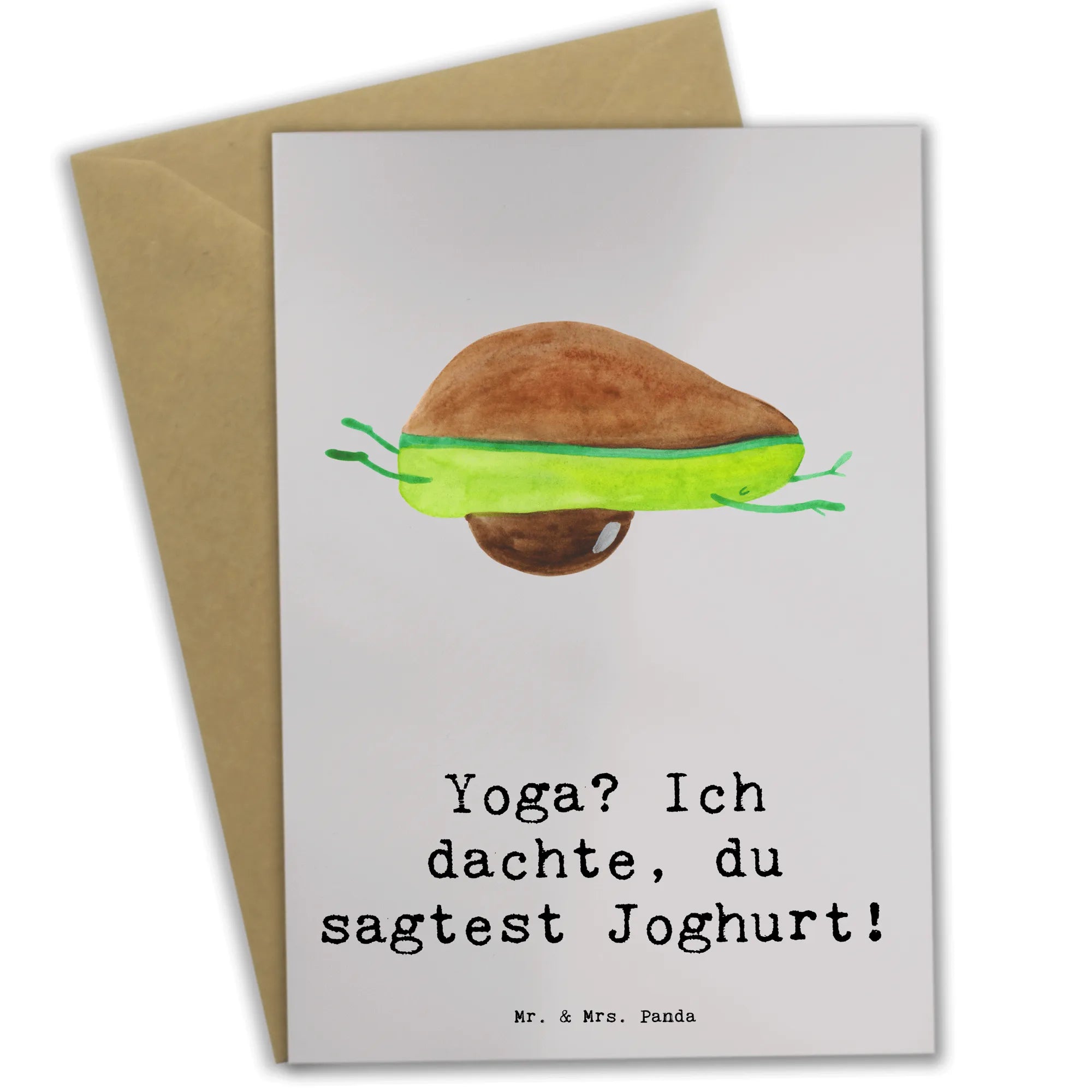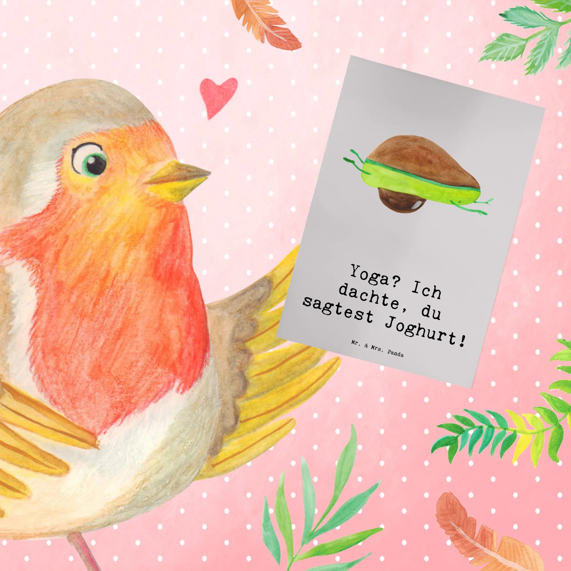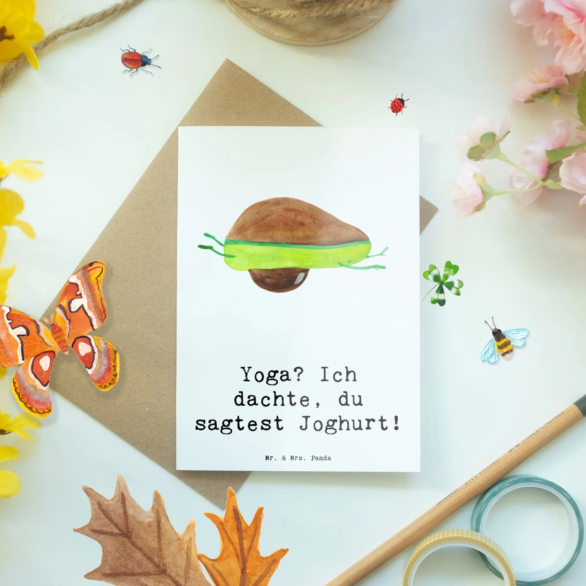 Die wunderschöne Grußkarte 'Yoga? Ich dachte, du sagtest Joghurt!' aus der Kollektion Sportarten von Mr. & Mrs. Panda ist das perfekte Geschenk für alle Sportbegeisterten und Yogaliebhaber.