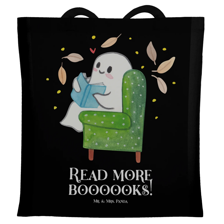 Das süße Design mit dem lächelnden Gespenst, das in einem gemütlichen grünen Sessel sitzt und ein blaues Buch liest, bringt garantiert ein Lächeln auf dein Gesicht. Umrahmt von herbstlich schimmernden Blättern und einem kleinen roten Herz, schafft die Tasche eine ruhige und friedliche Atmosphäre. Der Slogan "Read more boooooks!" erinnert uns daran, wie schön Lesen sein kann!