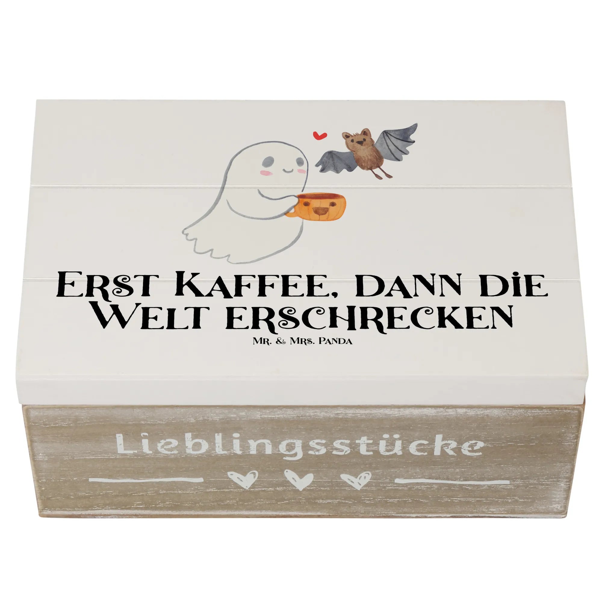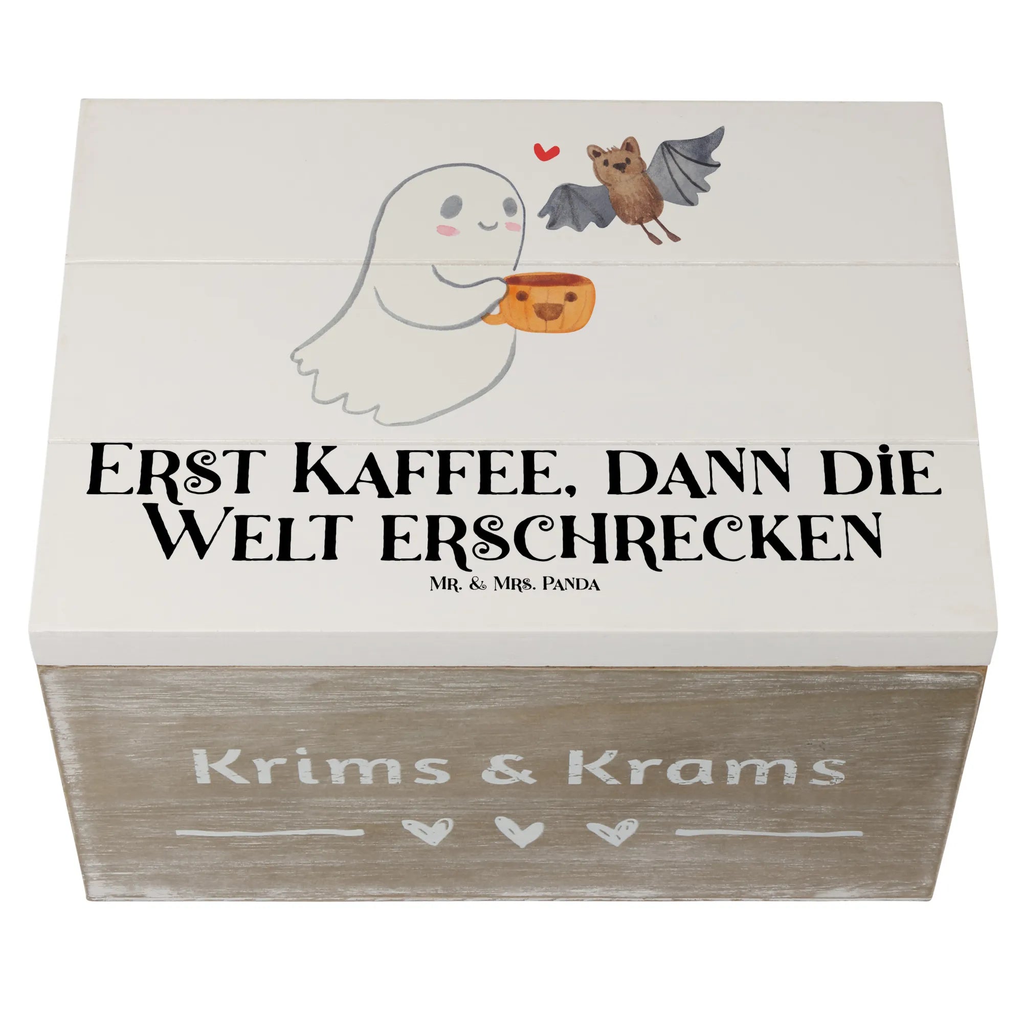 Suchst Du das perfekte Geschenk für Halloween oder einfach nur etwas Süßes, das den Alltag auflockert? Unsere besondere Holzkiste mit dem zauberhaften Motiv "Gespenst Kaffee" von Mr. & Mrs. Panda ist genau das, was Du brauchst!