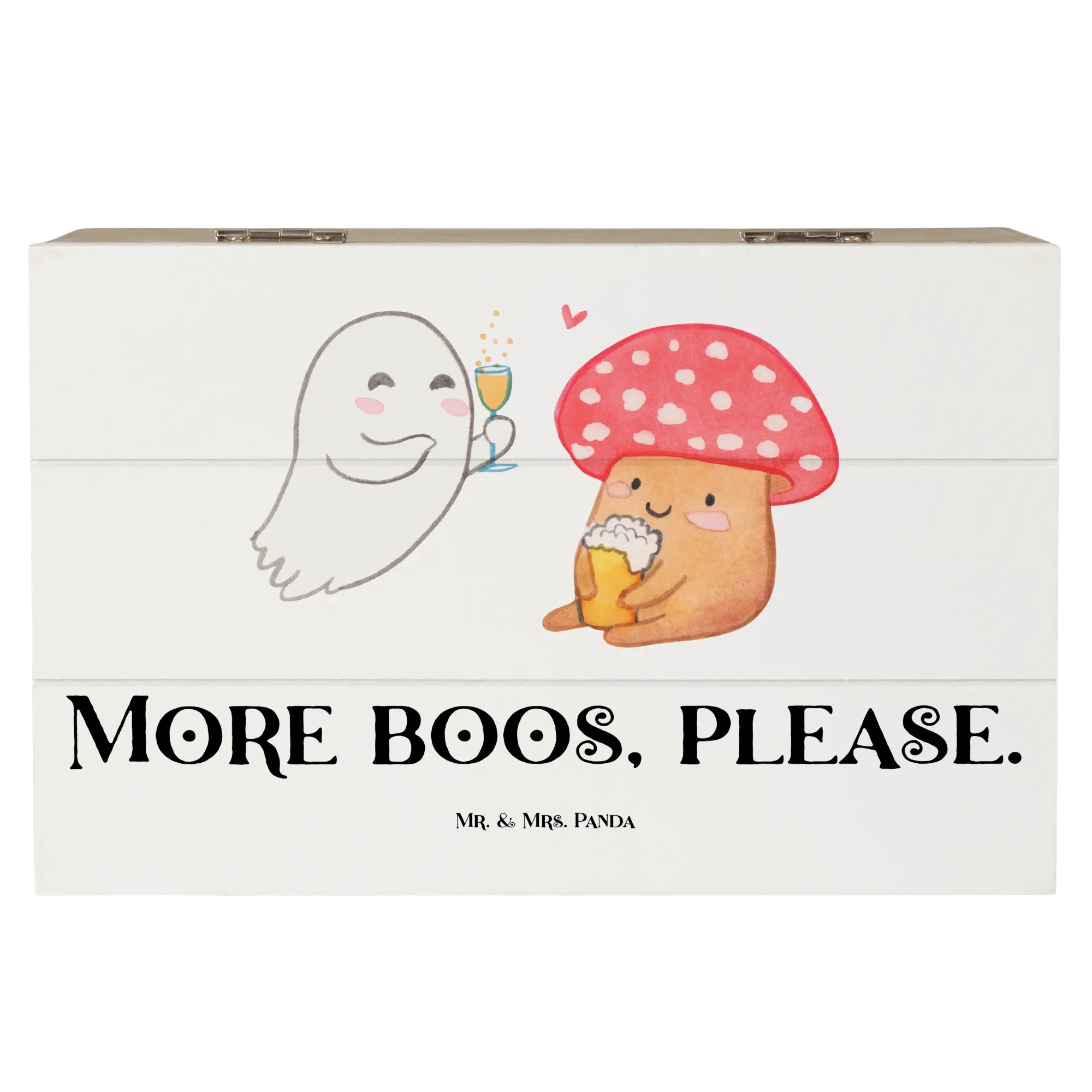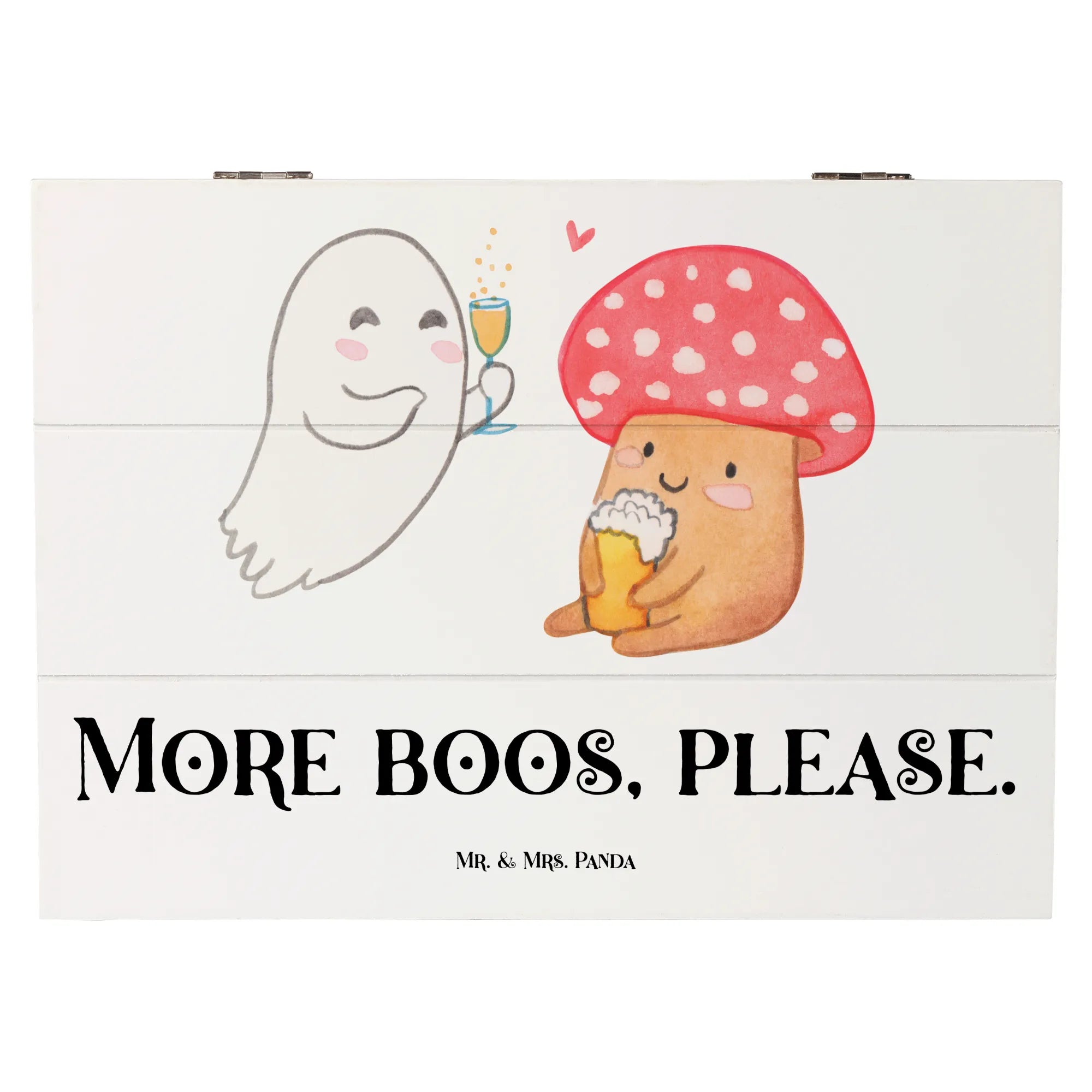 Entdecke die zauberhafte Holzkiste "Gespenst Prost" aus der Halloween Kollektion von Mr. & Mrs. Panda! Diese wunderschöne und praktische Erinnerungskiste ist der perfekte Begleiter für all deine kostbaren Schätze und schönen Erinnerungen. Mit liebevoll handgezeichneten Motiven bringt unser fröhliches Gespenst, das mit einem Glas Sekt auf dich anstößt, ein Lächeln auf dein Gesicht. Das niedliche Fliegenpilzwesen mit einem Pils in der Hand sorgt für eine heitere Stimmung und macht die Kiste ideal für Halloween-Feiern oder als Dekoration.