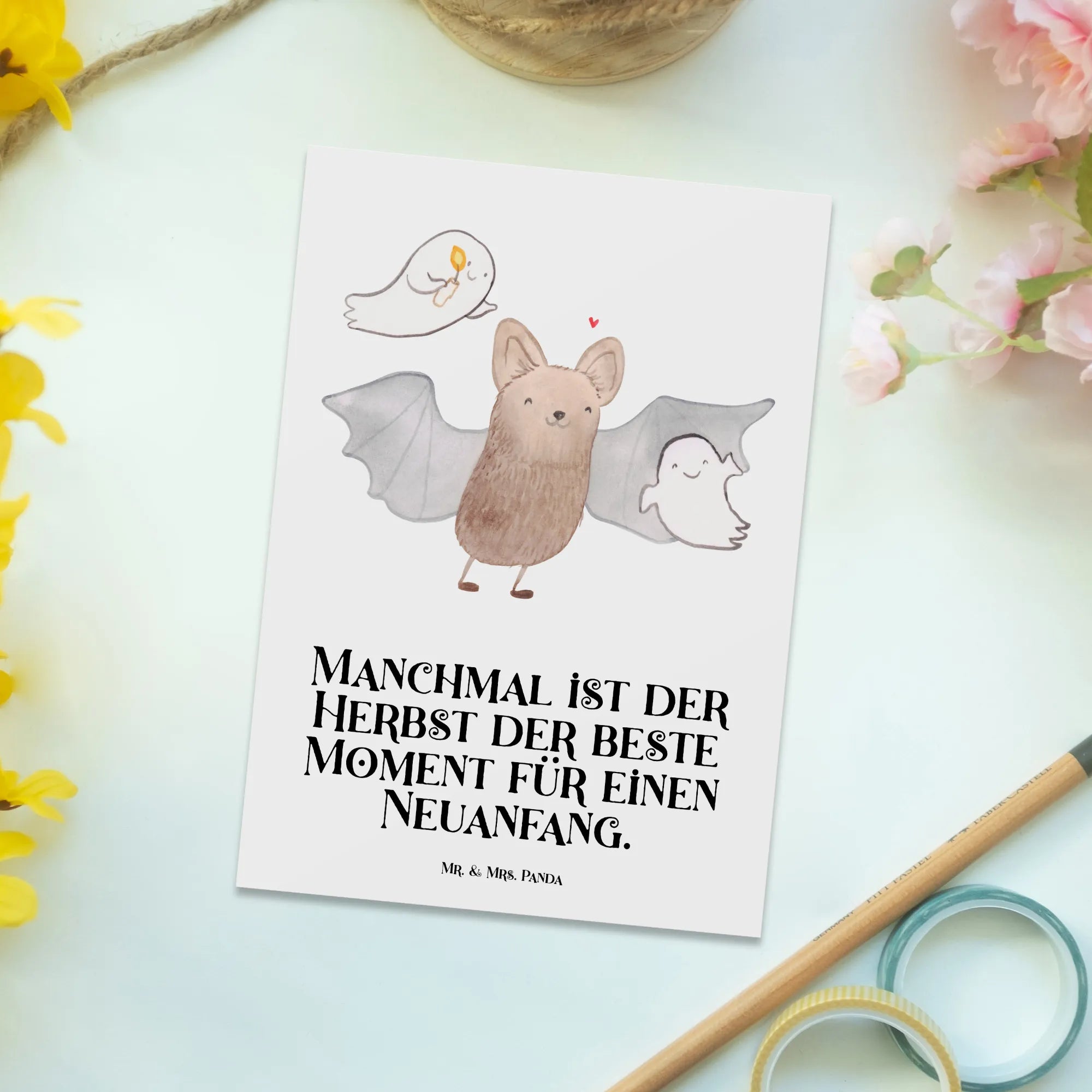 Egal, ob du sie zur Deko nutzt oder als Teil einer Einladungskarte für deine Halloween-Feier, die "Fledermaus Gespenster" Postkarte ist die ideale Wahl. Lass dein Herz sprechen und teile die Freude dieser mystischen Jahreszeit, indem du jemanden mit dieser niedlichen Karte überraschst. Denn gute Freunde verdienen das Beste und was könnte da besser passen als eine liebevolle Grußkarte von Mr. & Mrs. Panda, um die gruselige, aber auch magische Zeit des Jahres zu feiern?