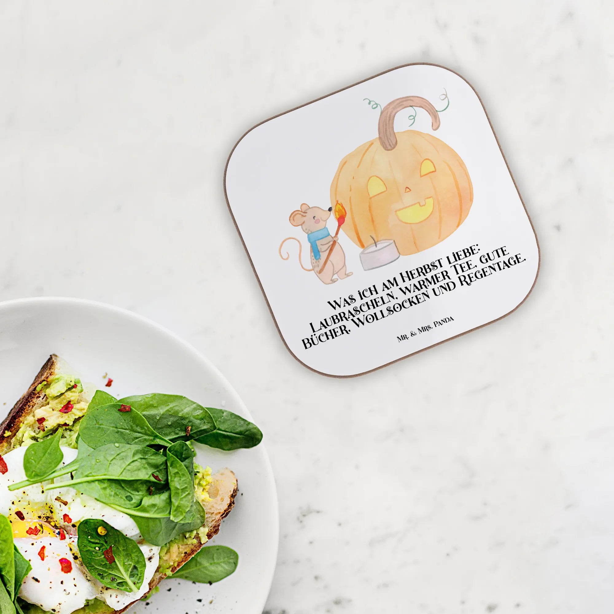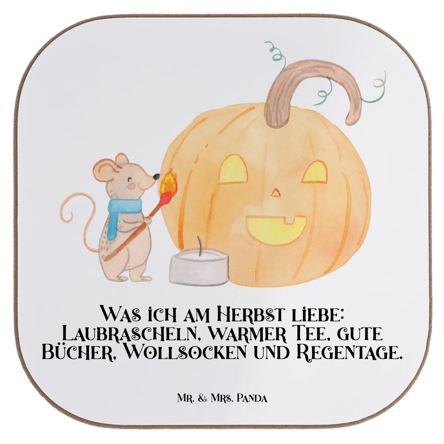 Ein Blick auf den witzigen „Kürbis Maus“ Untersetzer und man sieht gleich die Freude, die er verbreitet. Diese besonderen Untersetzer sind nicht personalisierbar, aber sie kommen mit dem herbstlichen Slogan: „Was ich am Herbst liebe: Laubrascheln, warmer Tee, gute Bücher, Wollsocken und Regentage!“, der genau die richtige Stimmung einfängt.