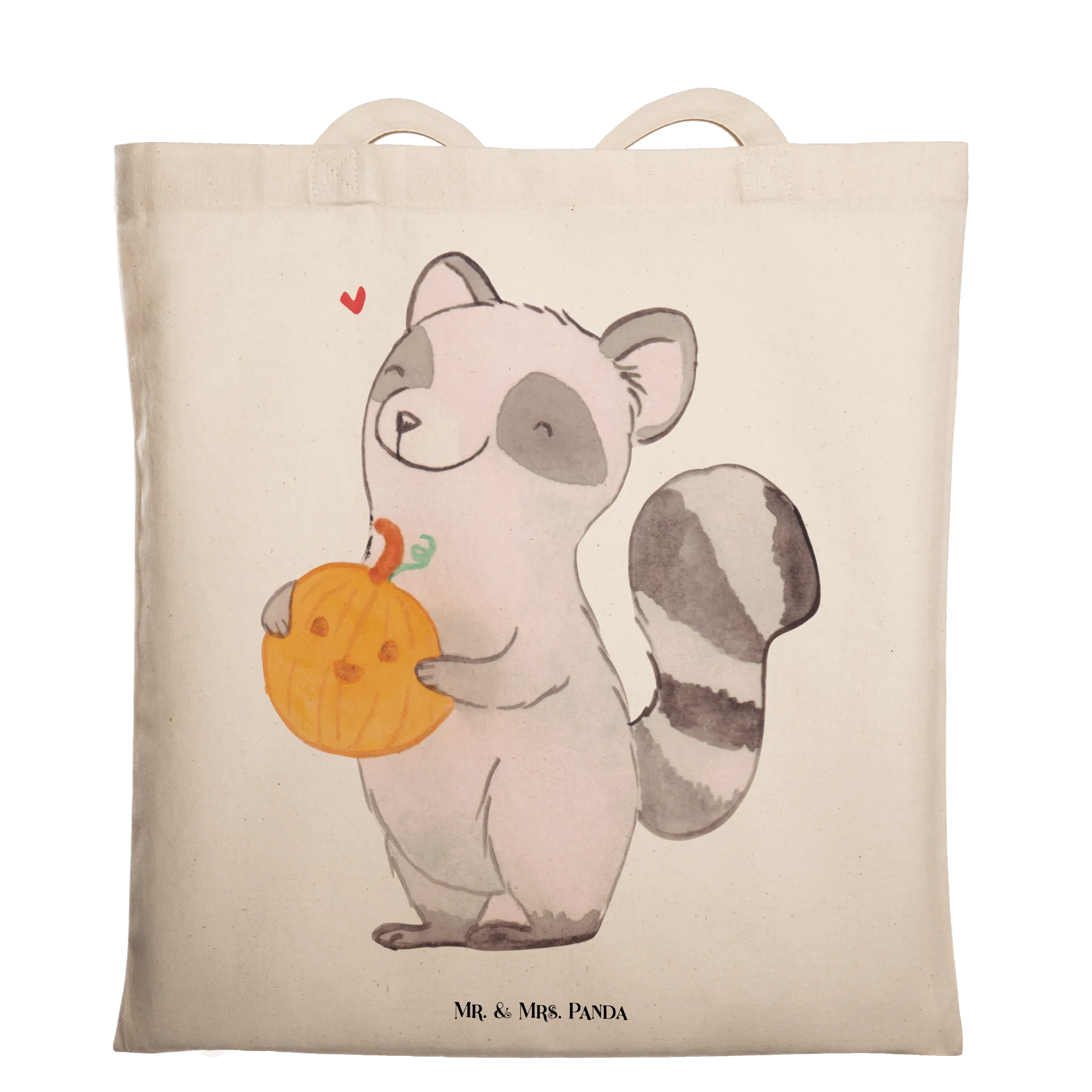 Tragetasche Waschbär Kürbis - mit Spruch - Transparent