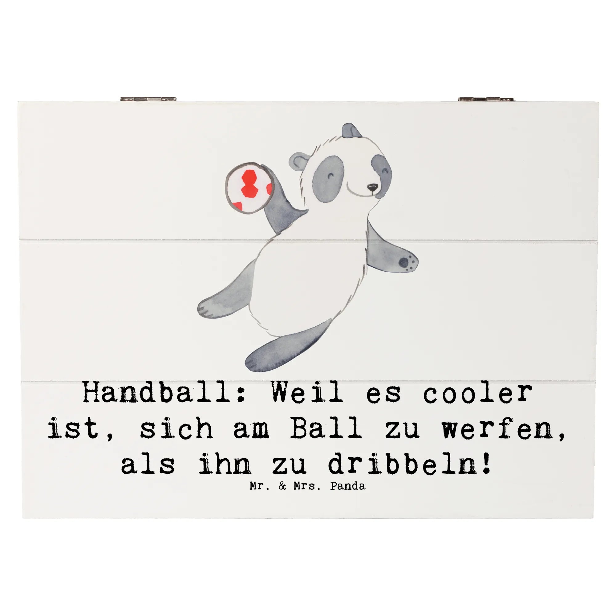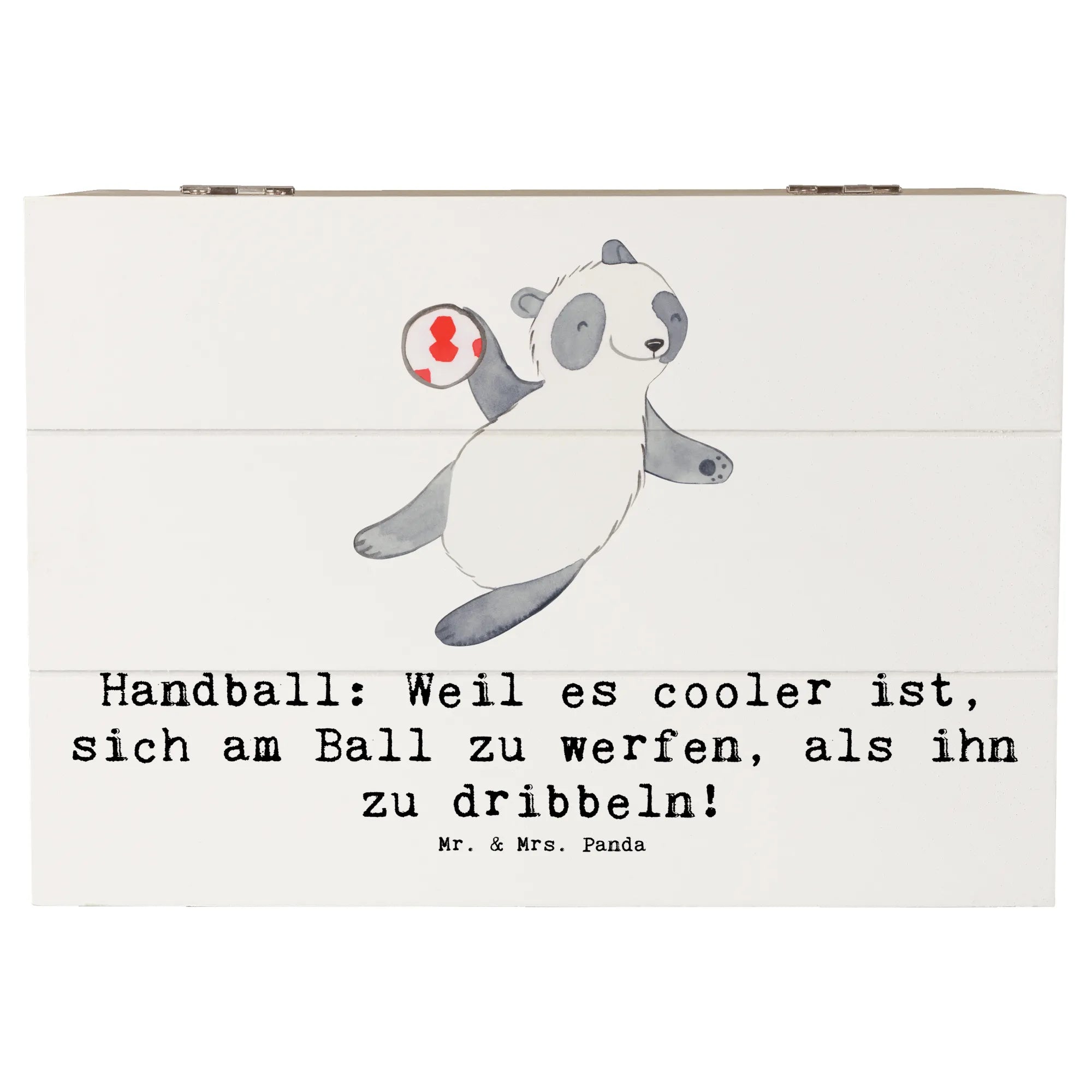 Die wunderschöne Holzkiste mit dem einzigartigen Handball-Motiv von Mr. & Mrs. Panda ist das perfekte Geschenk für Sportbegeisterte! Egal, ob du einen leidenschaftlichen Handballspieler, eine talentierte Handballspielerin oder einfach einen Sportfan beschenken möchtest – diese Kiste ist ein echter Blickfang. Gefertigt aus robuster Premium Hartfaser, bietet sie nicht nur Stabilität, sondern auch einen schlichten und edlen Look.