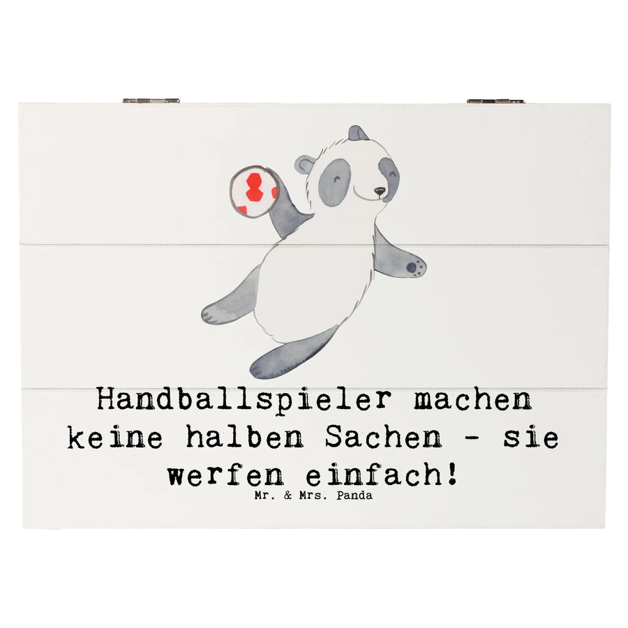 Entdecke die zauberhafte Holzkiste von Mr. & Mrs. Panda, die perfekt für alle Handball-Liebhaber geeignet ist! Diese wunderschöne Kiste ist nicht nur ein stilvolles Aufbewahrungsstück, sondern auch ein ganz besonderes Geschenk für zahlreiche Anlässe. Mit dem liebevollen Handball-Motiv und dem Spruch 'Handballspieler machen keine halben Sachen - sie werfen einfach!' wird sie garantiert zum Blickfang in jedem Raum. Die Größe von 180 mm x 250 mm x 150 mm bietet ausreichend Platz für all deine wertvollen Erinnerungen.
