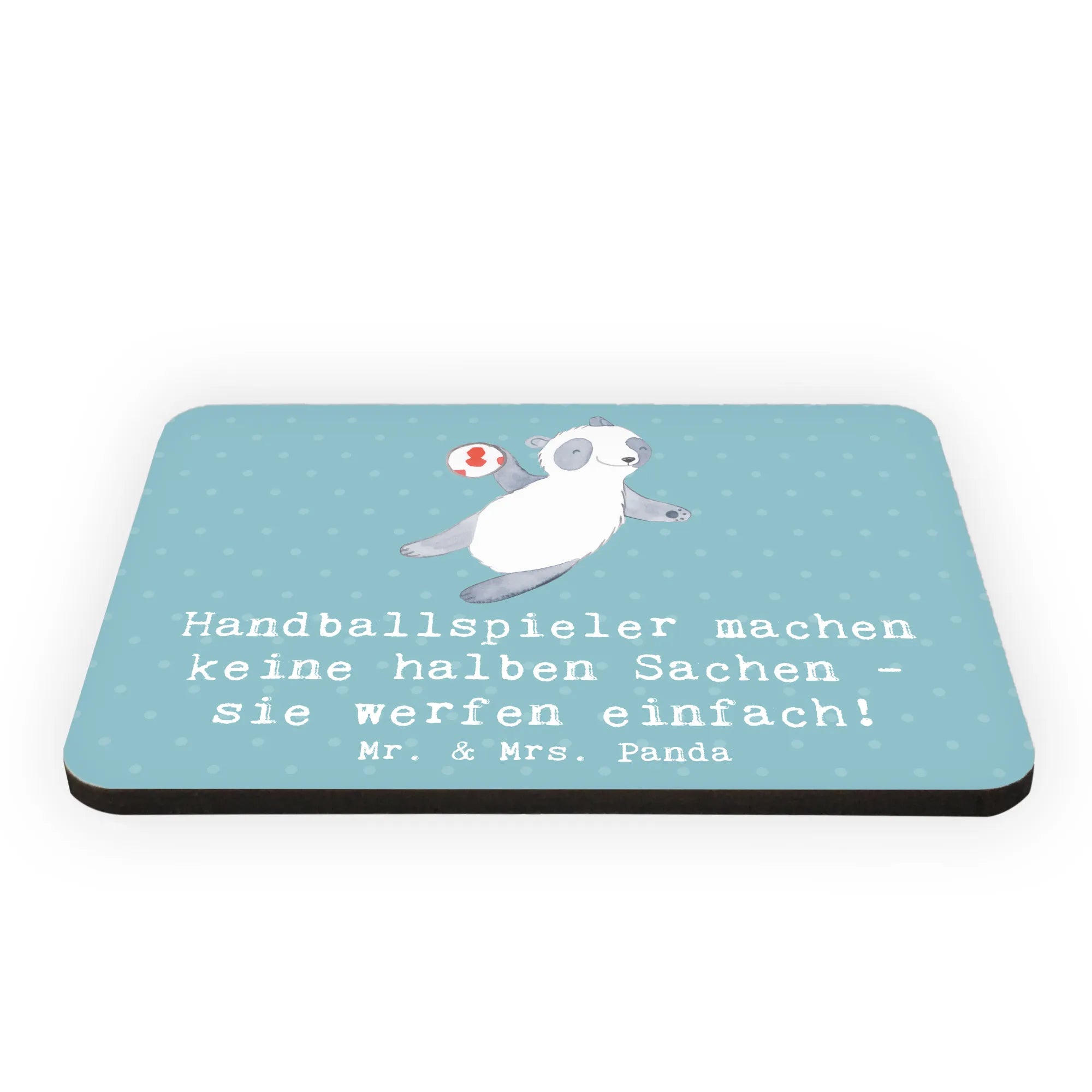 Der Handball Magnet von Mr. & Mrs. Panda ist das perfekte Geschenk für alle Handballliebhaber und Sportbegeisterte. Mit seinem bunten, liebevoll gestalteten Motiv bringst du nicht nur Farbe in dein Zuhause, sondern zeigst auch deine Leidenschaft für die Sportart Handball. Der Slogan "Handballspieler machen keine halben Sachen - sie werfen einfach!" macht diesen Magneten zu einem witzigen und inspirierenden Hingucker, der garantiert ein Lächeln auf dein Gesicht zaubert oder das eines Freundes, den du beschenken möchtest.