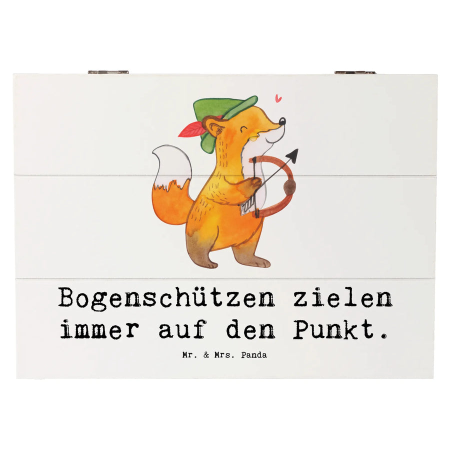 Die wunderschöne Holzkiste von Mr. & Mrs. Panda ist das perfekte Geschenk für alle Bogensport-Enthusiasten! Sie kommt in einem stilvollen Design mit dem inspirierenden Spruch "Bogenschützen zielen immer auf den Punkt", der jeden Bogenschützen motiviert und erfreut.