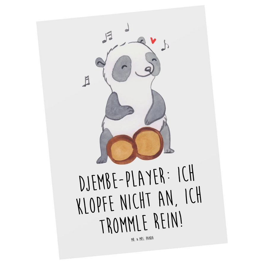 Du suchst nach dem perfekten Geschenk für einen Musikliebhaber oder einen angehenden Djembe-Spieler? Dann ist die Postkarte Djembe aus der Kollektion Musizieren & Instrumente von Mr. & Mrs. Panda genau das Richtige für dich! Diese einzigartige Postkarte, die mit einem niedlichen Motiv einer Djembe und dem witzigen Slogan 'Djembe-Player: Ich klopfe nicht an, ich trommle rein!' versehen ist, eignet sich hervorragend für verschiedene Anlässe.