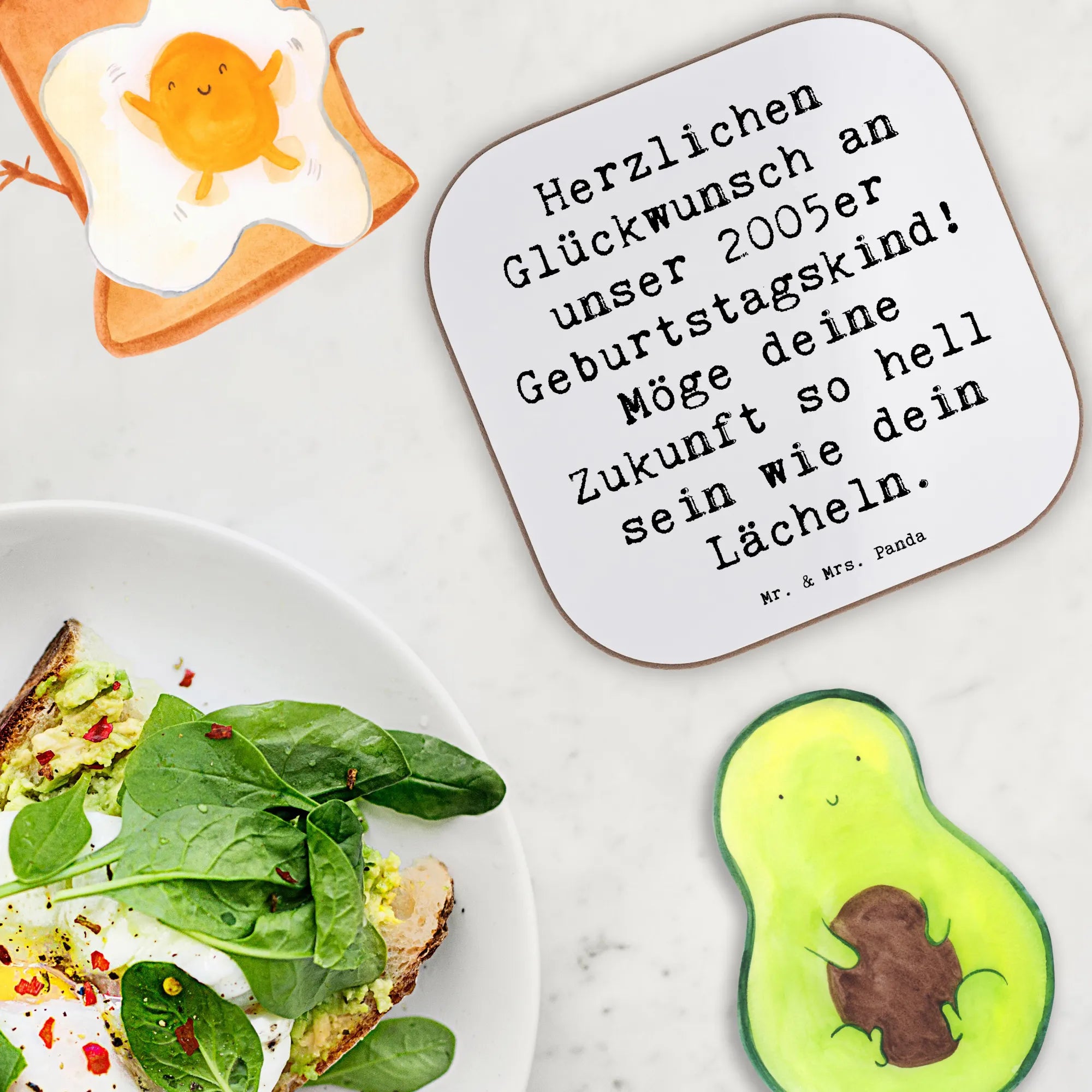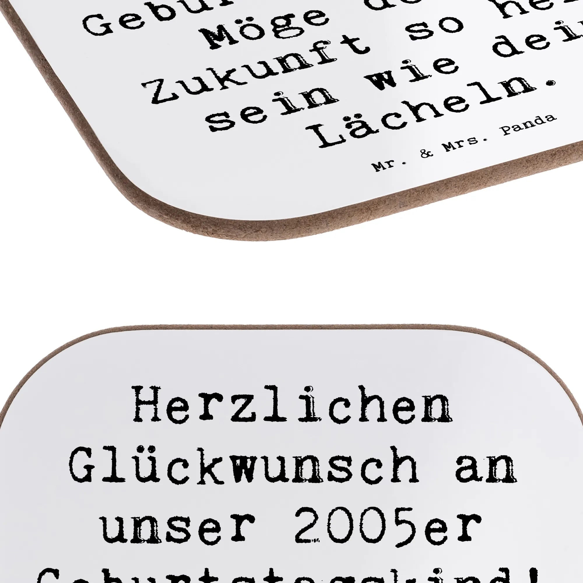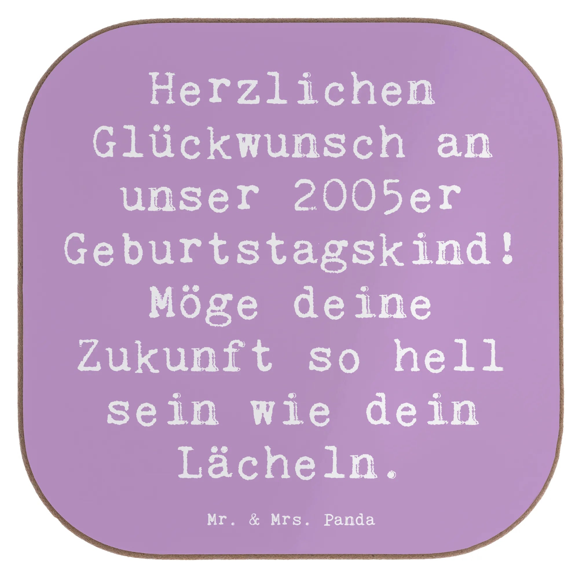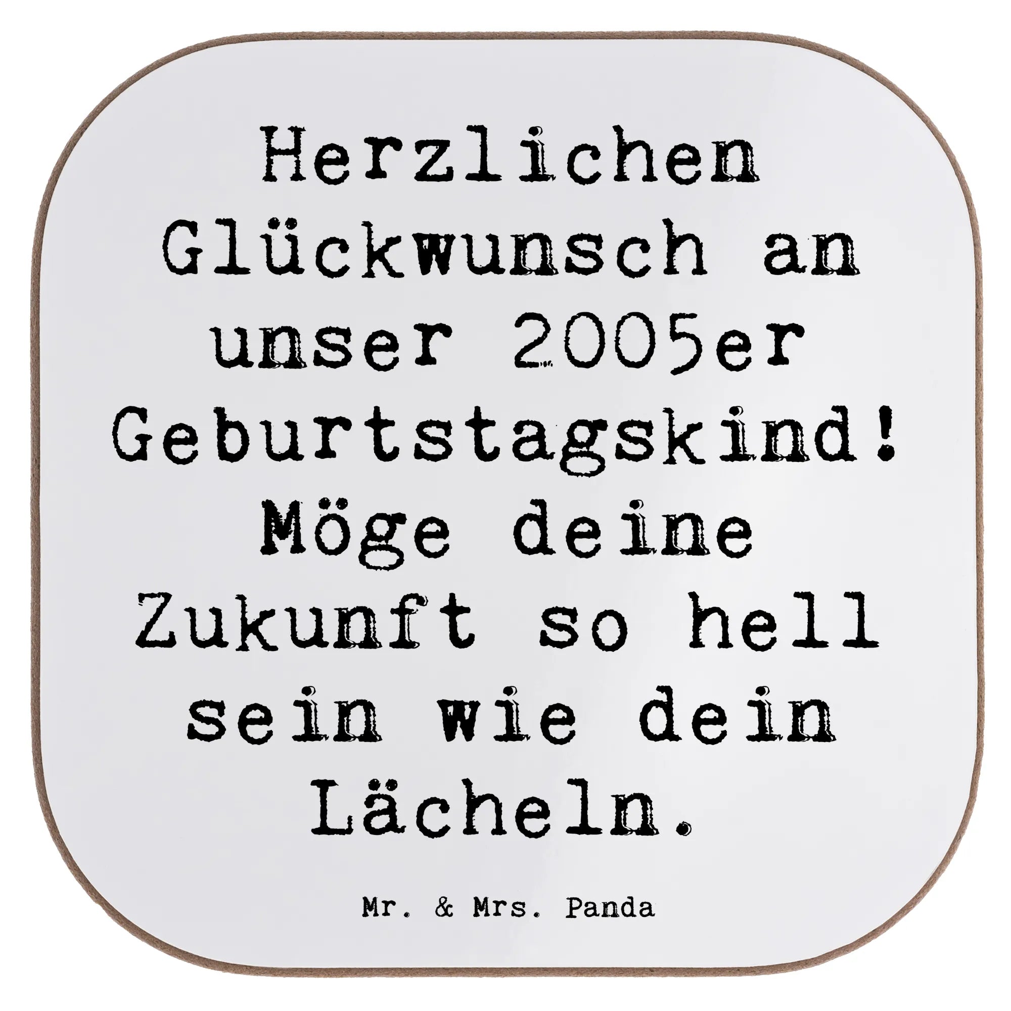 Ein kleines Geschenk mit großer Wirkung: Unser quadratischer Untersetzer von Mr. & Mrs. Panda mit dem Motiv „2005 Geburtstag“ ist die liebevolle Art, einem besonderen Menschen zum Geburtstag zu gratulieren. Der Spruch „Herzlichen Glückwunsch an unser 2005er Geburtstagskind! Möge deine Zukunft so hell sein wie dein Lächeln.“ steht im Mittelpunkt und macht den Glasuntersetzer, Tassenuntersetzer oder Becheruntersetzer zu einem persönlichen Andenken.