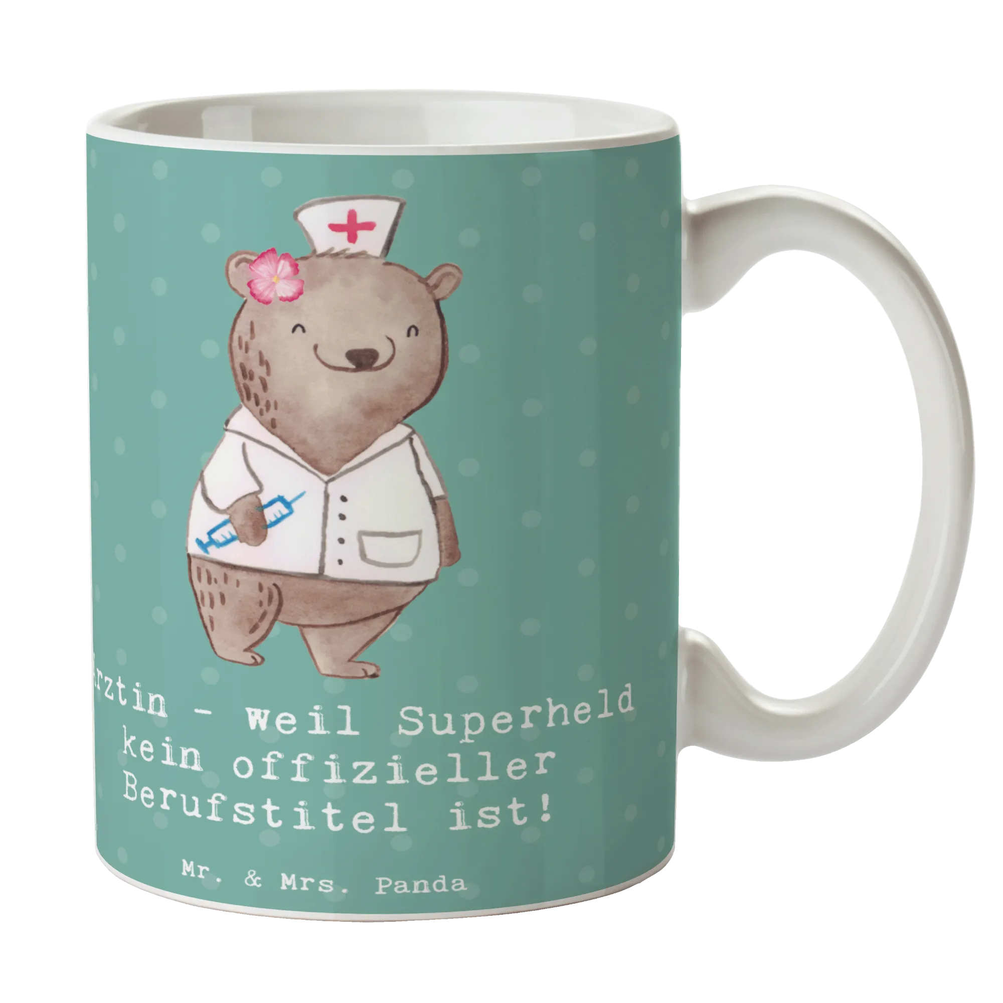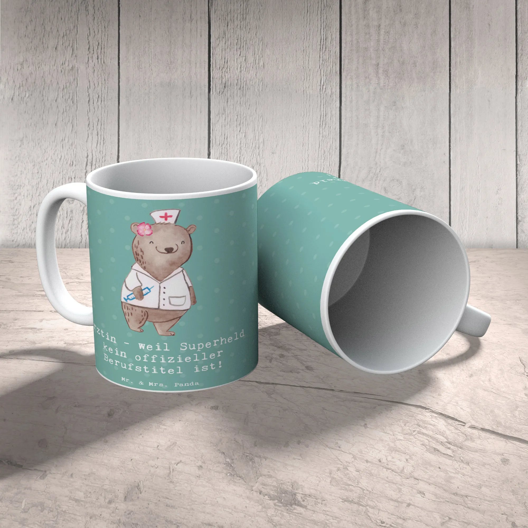 Die wunderschöne Keramiktasse von Mr. & Mrs. Panda ist das perfekte Geschenk für alle Ärztinnen! Mit dem liebevoll gestalteten Motiv "Ärztin - weil Superheld kein offizieller Berufstitel ist!" bringt diese Tasse Freude in den stressigen Alltag von Medizinern. Ob zum Berufsjubiläum, zur Einarbeitungsfeier oder einfach so, um Danke zu sagen – diese Tasse ist ein ideales Geschenk für jeden Anlass.