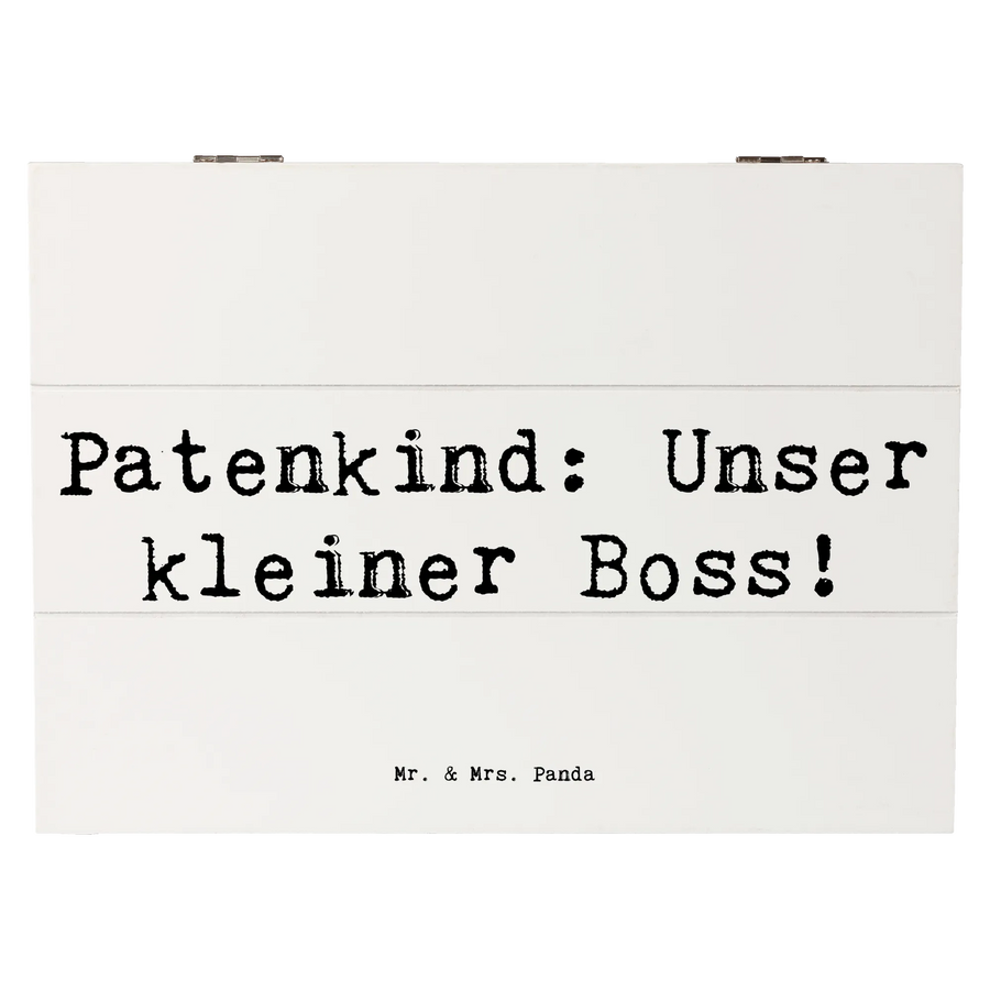 Die wunderschöne Holzkiste "Patenkind: Unser kleiner Boss!" von Mr. & Mrs. Panda ist das perfekte Geschenk für dein Patenkind. In der charmanten Sammlung Familie & Verwandte vereint sie kreative Designs mit herzlichen Botschaften und eignet sich hervorragend als Erinnerungsbox für die kostbarsten Schätze deines Patenkindes.