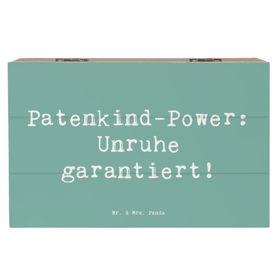 Die Kiste ist nicht personalisierbar, aber der Spruch "Patenkind-Power: Unruhe garantiert!" spricht Bände über die fröhlichen Momente, die ihr zusammen erleben werdet.