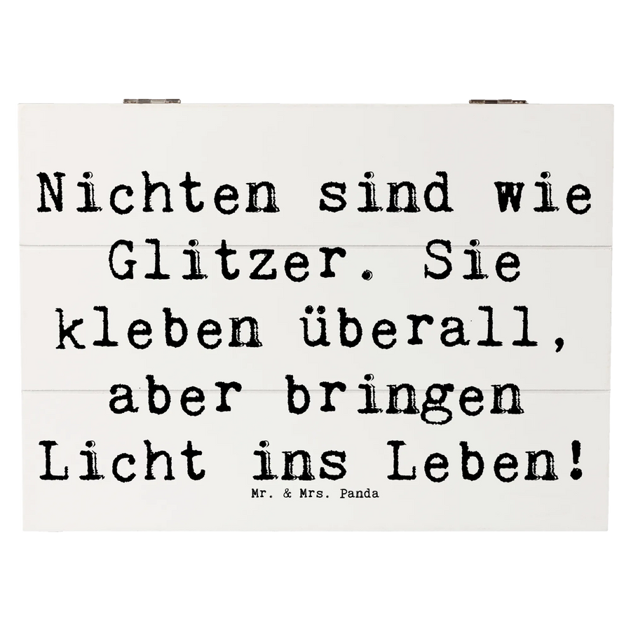 Die wunderschöne Holzkiste von Mr. & Mrs. Panda ist nicht nur ein hübsches Deko-Objekt, sondern auch eine liebevolle Erinnerungskiste für Deine Nichte. Mit dem bezaubernden Spruch "Nichten sind wie Glitzer. Sie kleben überall, aber bringen Licht ins Leben!" bringt diese Schatzkiste noch mehr Freude in Dein Zuhause.