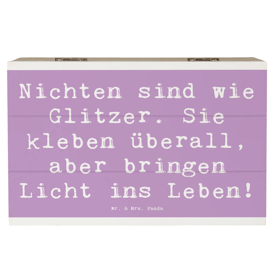 Die wunderschöne Holzkiste von Mr. & Mrs. Panda ist nicht nur ein hübsches Deko-Objekt, sondern auch eine liebevolle Erinnerungskiste für Deine Nichte. Mit dem bezaubernden Spruch "Nichten sind wie Glitzer. Sie kleben überall, aber bringen Licht ins Leben!" bringt diese Schatzkiste noch mehr Freude in Dein Zuhause.