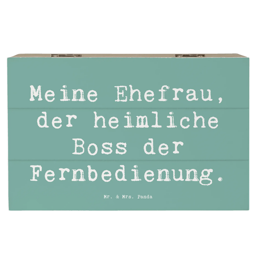 Die Holzkiste "Meine Ehefrau, der heimliche Boss der Fernbedienung" von Mr. & Mrs. Panda ist das perfekte Geschenk für Deine Lieblings-Ehefrau. Diese wunderschöne Erinnerungskiste vereint praktischen Nutzen mit einer liebevollen Botschaft und ist damit ein besonderes Highlight für jeden Anlass. Egal ob zum Geburtstag, Hochzeitstag oder einfach so als Zeichen Deiner Wertschätzung – mit dieser Kiste kannst Du Deiner Ehefrau zeigen, wie viel sie Dir bedeutet.