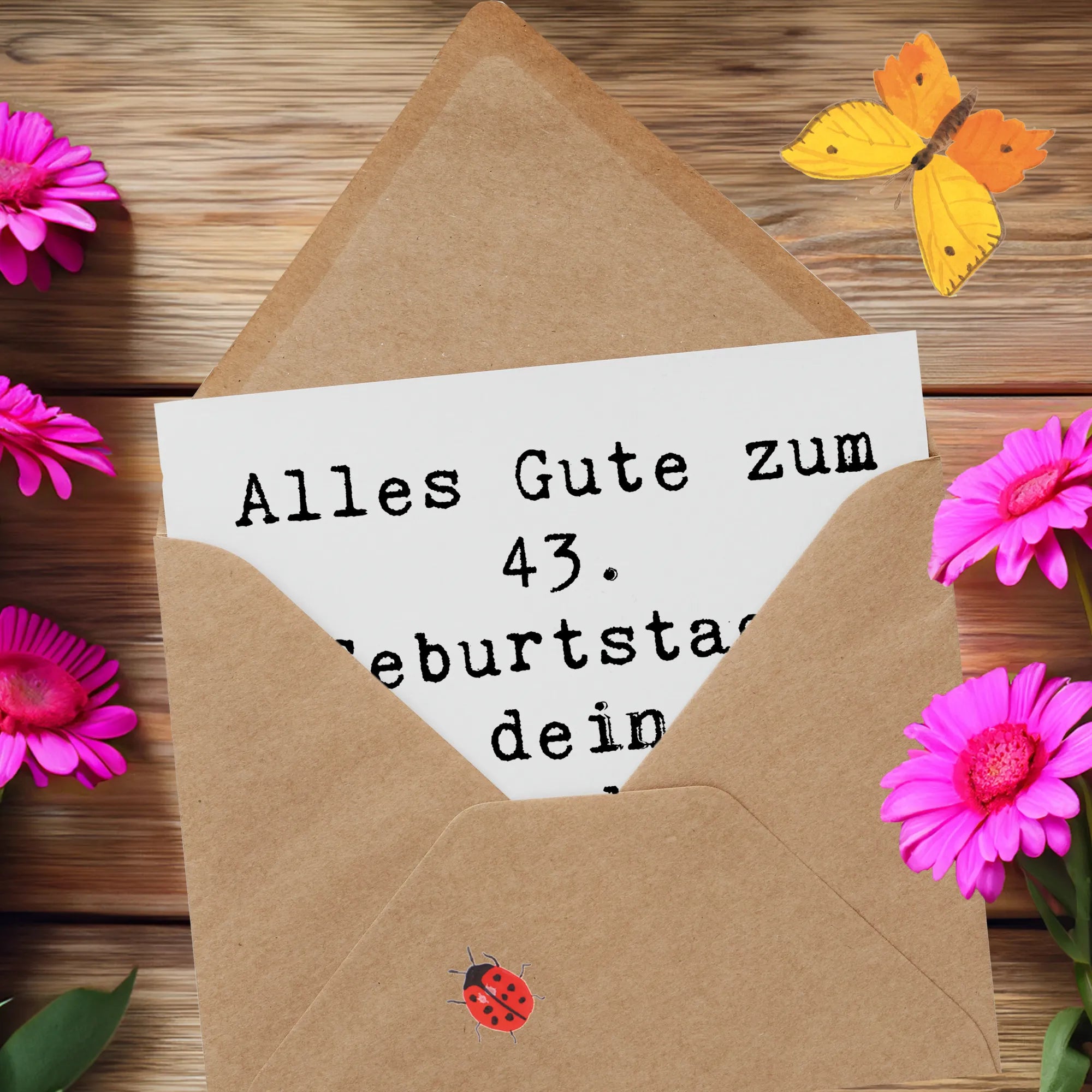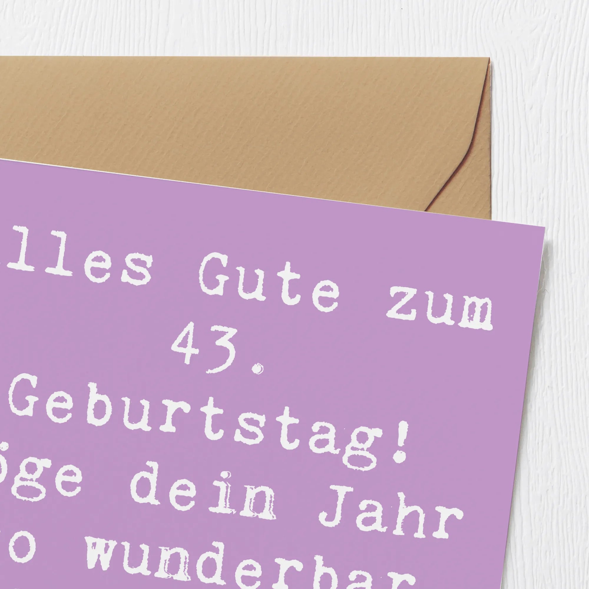Verschenke Freude und verschenke Erinnerungen! Die Deluxe Karte zum 43. Geburtstag wird zusammen mit einem eleganten Umschlag geliefert, sodass du direkt bereit bist, deine Glückwünsche zu überbringen. Verwöhne deine Liebsten mit dieser tollen Glückwunschkarte und erlebe die Freude des Schenkens!