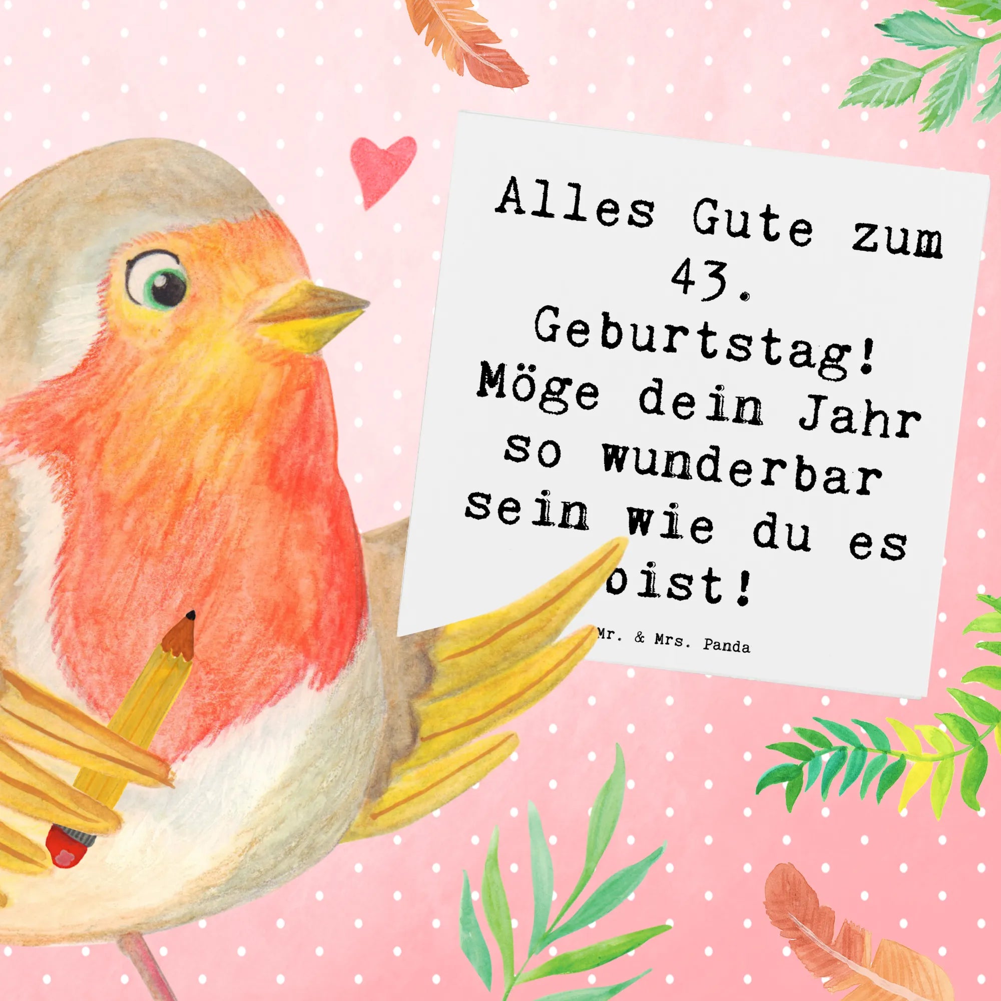 Mit vielen Möglichkeiten, deine Gefühle auszudrücken, kannst du diese Karte zu jedem besonderen Anlass verwenden – sei es zum Jubel, zur Verabschiedung oder bei Jubiläen. Mache den 43. Geburtstag unvergesslich und teile die Freude mit der Deluxe Karte von Mr. & Mrs. Panda. Lass die Feier beginnen!