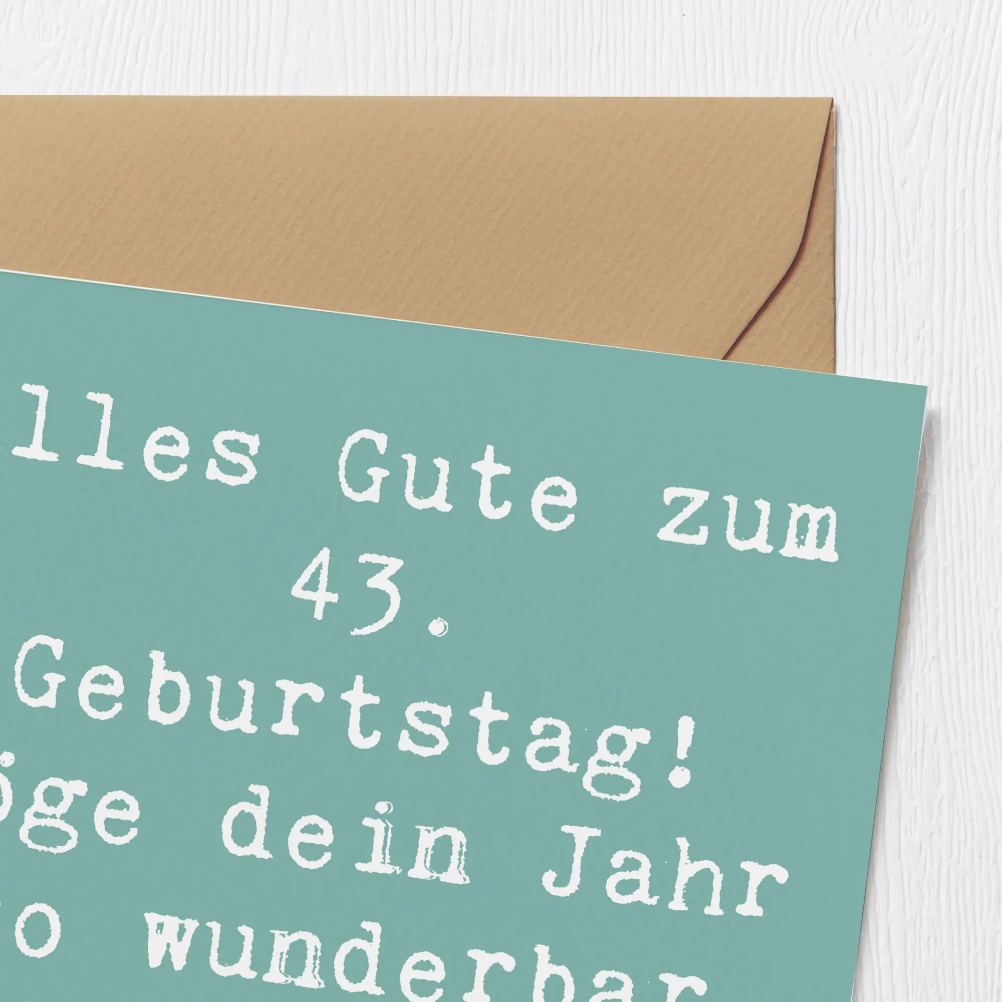 Das Motiv "Alles Gute zum 43. Geburtstag! Möge dein Jahr so wunderbar sein wie du es bist!" bringt nicht nur ein Lächeln auf das Gesicht des Geburtstagskindes, sondern begleitet es auch symbolisch in ein neues Lebensjahr. Die Karte hat die ideale Größe von 140 mm x 140 mm, was sie zur perfekten Wahl für Geburtstagsgrüße, Einladungen oder Glückwünsche macht. Die matte Innenseite bietet genügend Platz für deine persönlichen Botschaften und Gedanken.