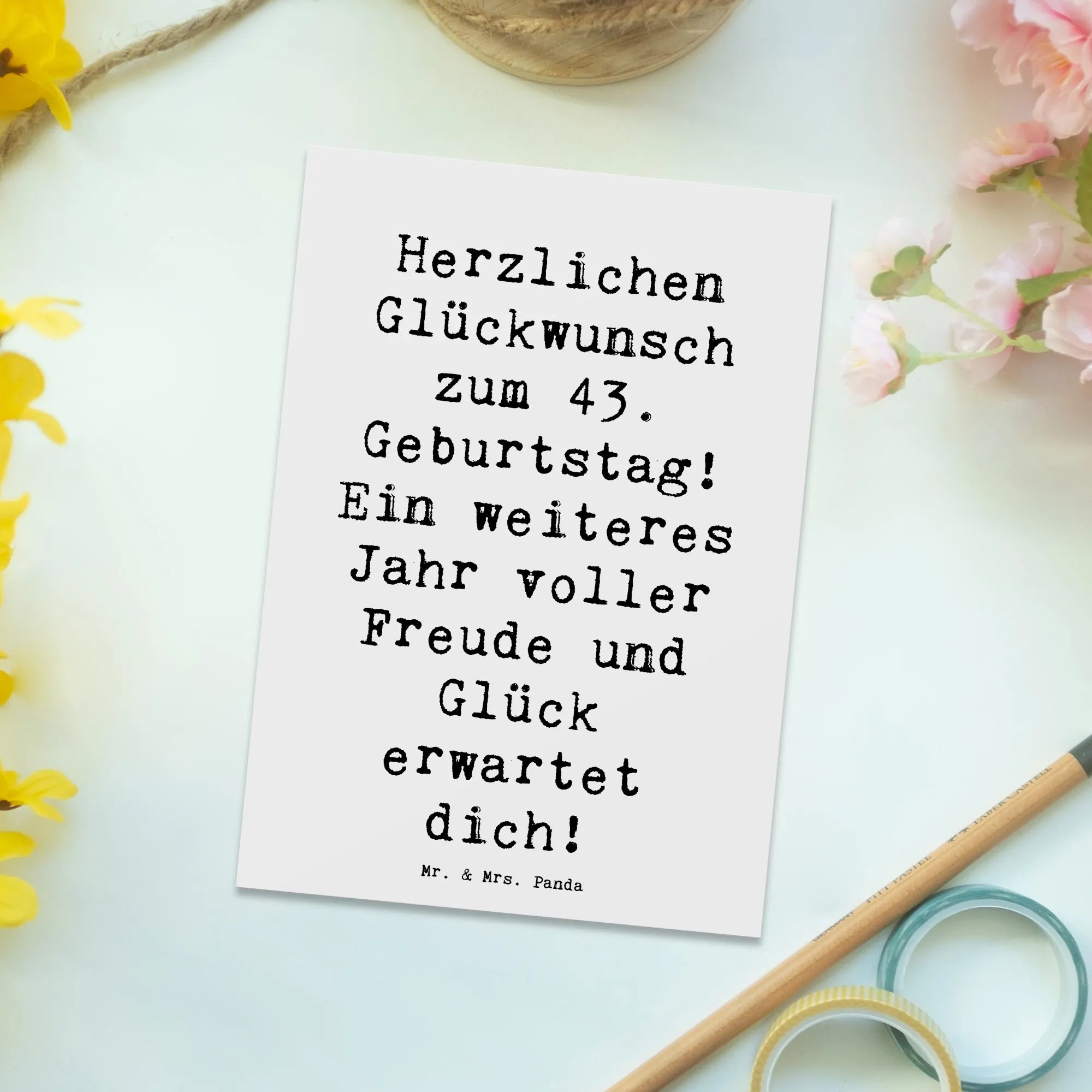Postkarte Spruch 43. Geburtstag Freude – Mr. & Mrs. Panda