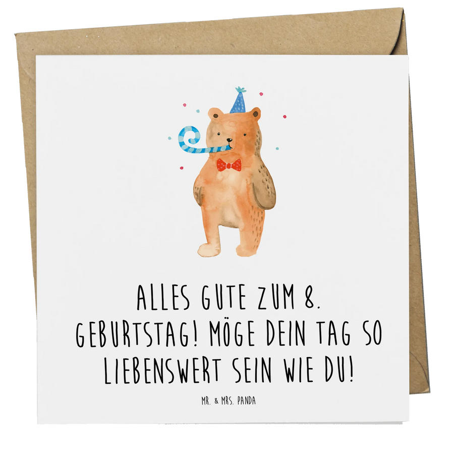 Die Deluxe Karte zum 8. Geburtstag von Mr. & Mrs. Panda ist das perfekte Geschenk für kleine Geburtstagskinder und ihre lieben Angehörigen. Mit dem liebevollen Spruch "Alles Gute zum 8. Geburtstag! Möge dein Tag so liebenswert sein wie du!" zaubert diese wunderschöne Karte jedem Kind ein Lächeln ins Gesicht.