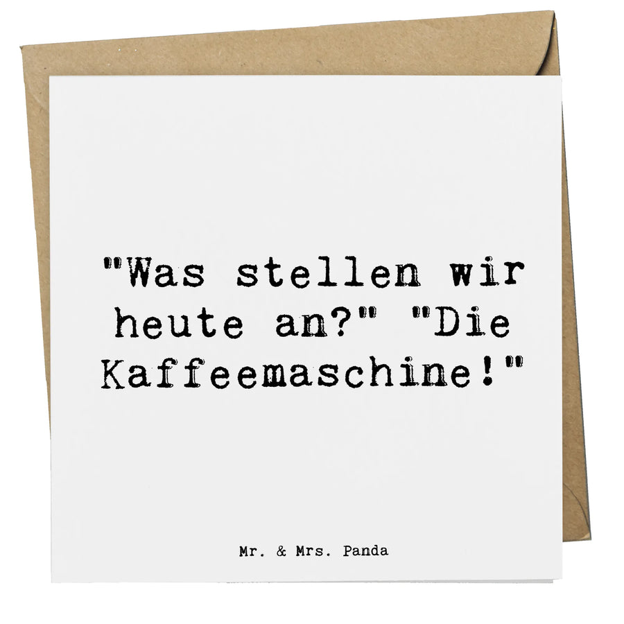Die Vorderseite ziert der Spruch "Was stellen wir heute an? Die Kaffeemaschine!", der mit einem fröhlichen Motiv harmoniert. Das durchdachte Design spricht für sich: Hergestellt aus 300 Gramm hochwertigem Karton, besticht die Karte durch ihre hochglänzend veredelte Vorderseite, während die matte Innenseite dir genügend Raum für deine persönlichen Worte bietet.