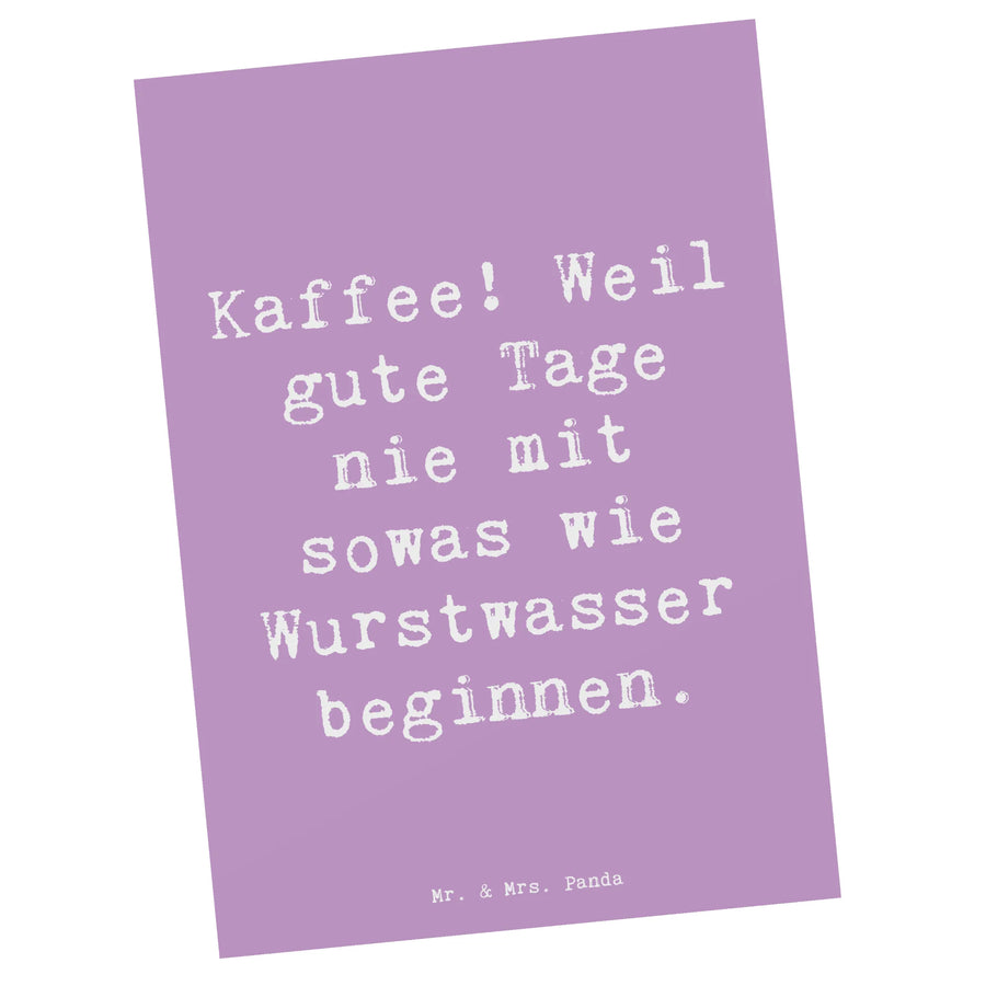 Die Postkarte mit dem witzigen Motiv "Freude" aus der Kollektion "Gefühle & Stimmungen" von Mr. & Mrs. Panda ist das perfekte Geschenk für jeden Anlass, der ein Lächeln ins Gesicht zaubern soll. Ob zu Geburtstagen, Hochzeiten oder einfach als kleine Aufmerksamkeit zwischendurch, diese Karte bringt Freude und positive Stimmung! Mit dem Spruch "Kaffee! Weil gute Tage nie mit sowas wie Wurstwasser beginnen." ist sie nicht nur ein toller Gruß, sondern auch eine liebevolle Erinnerung daran, dass gute Laune oft mit einer Tasse Kaffee beginnt.