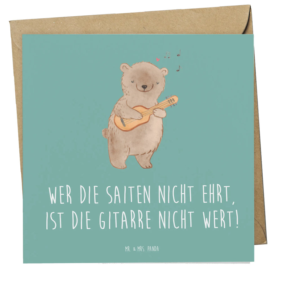 Diese wunderschöne quadratische Deluxe Karte von Mr. & Mrs. Panda bringt die Sprache der Musik direkt in Deine Hände. Mit dem frechen Spruch „Wer die Saiten nicht ehrt, ist die Gitarre nicht wert!“ und dem stimmungsvollen Gitarrenmotiv ist sie die perfekte Grußkarte für Musiker und Musikliebhaber.