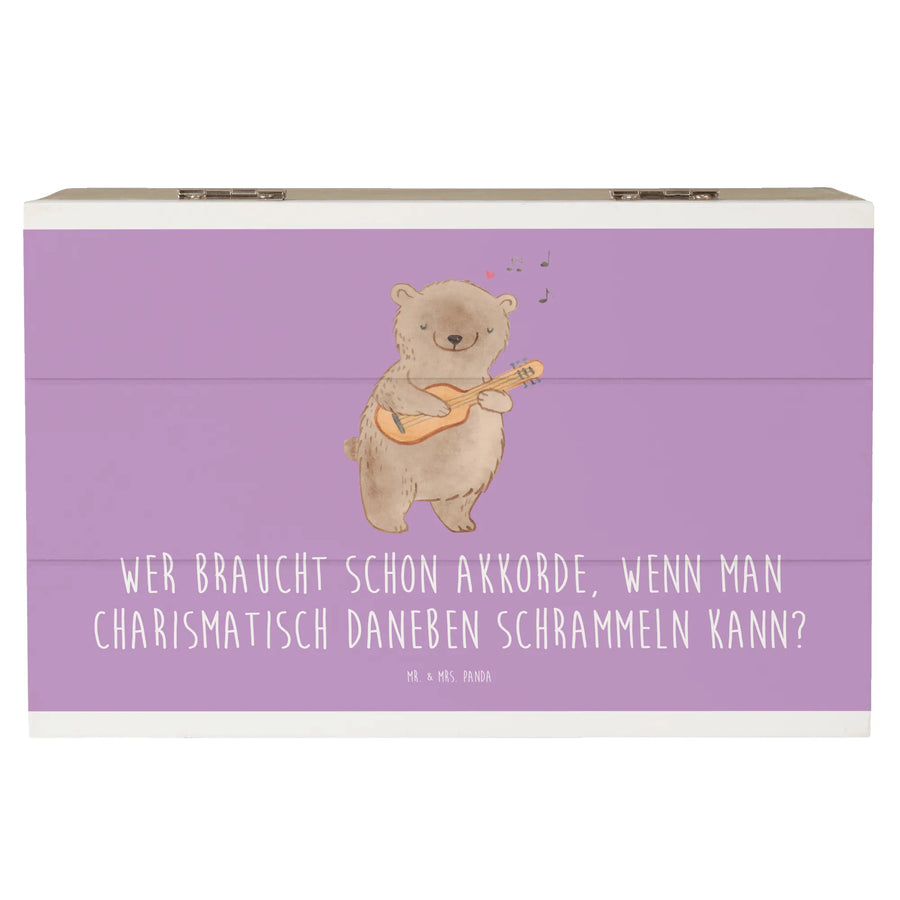 Mr. & Mrs. Panda Holzkiste Gitarre – die perfekte Kombination aus praktischer Aufbewahrung und musikalischem Herz. Dieses liebevoll gestaltete Schmuckstück ist ideal als Erinnerungskiste, Schatzkiste oder stilvolle Geschenkbox für alle, die Musik, Gitarrenklänge und kreative Melodien lieben. Auf der weißen Oberfläche prangt eine Gitarre als Symbol für Leidenschaft, Kreativität und Freiheit. Der freche Spruch „Wer braucht schon Akkorde, wenn man charismatisch daneben schrammeln kann?“ macht die Kiste zu einem persönlichen und humorvollen Geschenk.