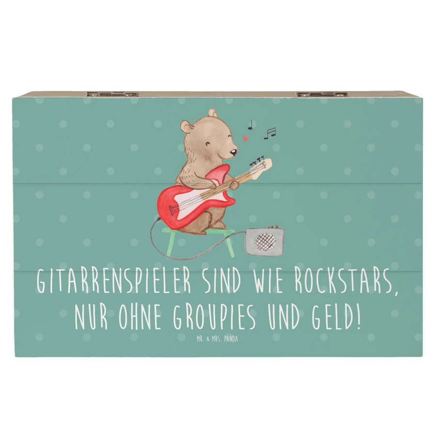 Entdecke die wunderschöne Holzkiste von Mr. & Mrs. Panda, perfekt für alle Musikliebhaber und Gitarrenspieler! Mit dem liebevollen Motiv einer Gitarre und dem Spruch 'Gitarrenspieler sind wie Rockstars, nur ohne Groupies und Geld!' ist diese Kiste nicht nur ein praktischer Aufbewahrungsort, sondern auch ein herzlicher Ausdruck Deiner Leidenschaft für Musik.
