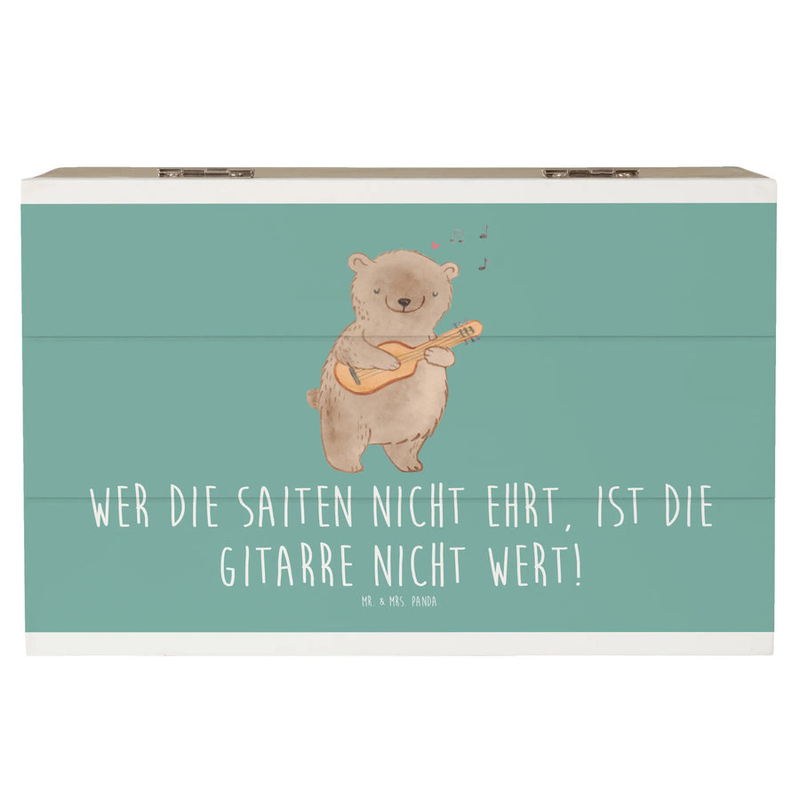 Du suchst ein liebevolles Geschenk für Musiker? Unsere Holzkiste Gitarre von Mr. & Mrs. Panda vereint Stil, Funktion und Herz. Das liebevoll bedruckte Gitarrenmotiv samt dem Spruch „Wer die Saiten nicht ehrt, ist die Gitarre nicht wert!“ macht diese Kiste zur perfekten Geschenkbox für Gitarristen, Musiklehrer und alle Musikbegeisterten.