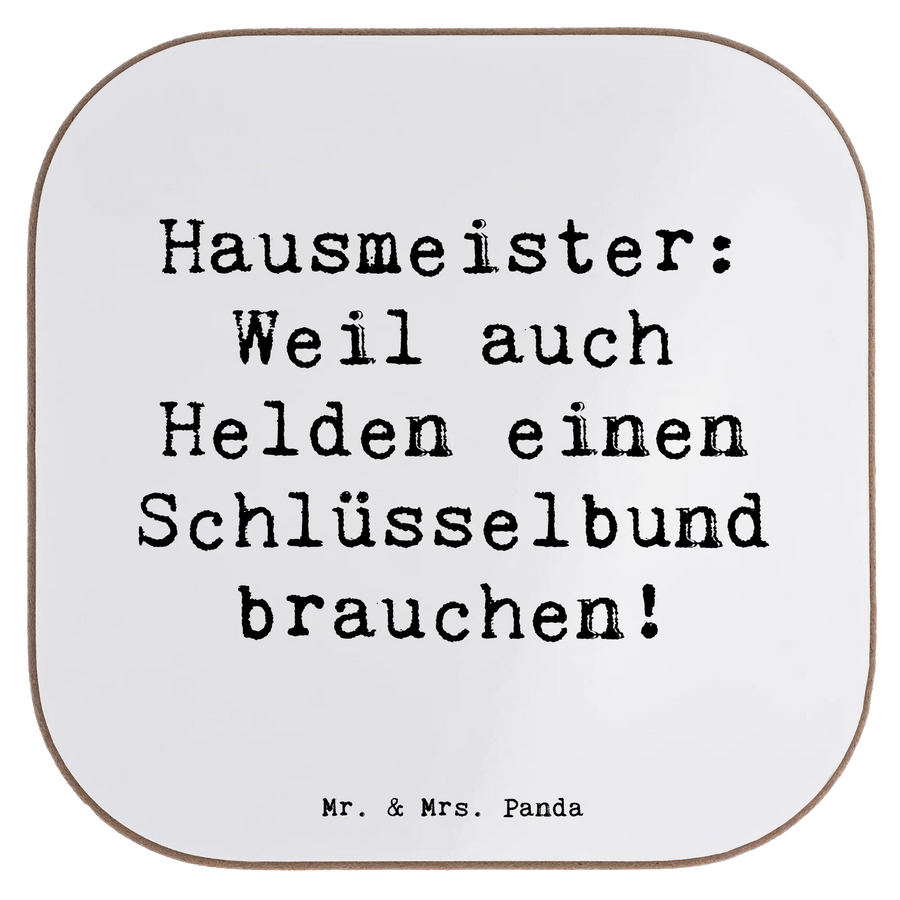 Untersetzer Spruch Hausmeister: Weil auch Helden einen Schlüsselbund brauchen! - Hartfaser - Weiß