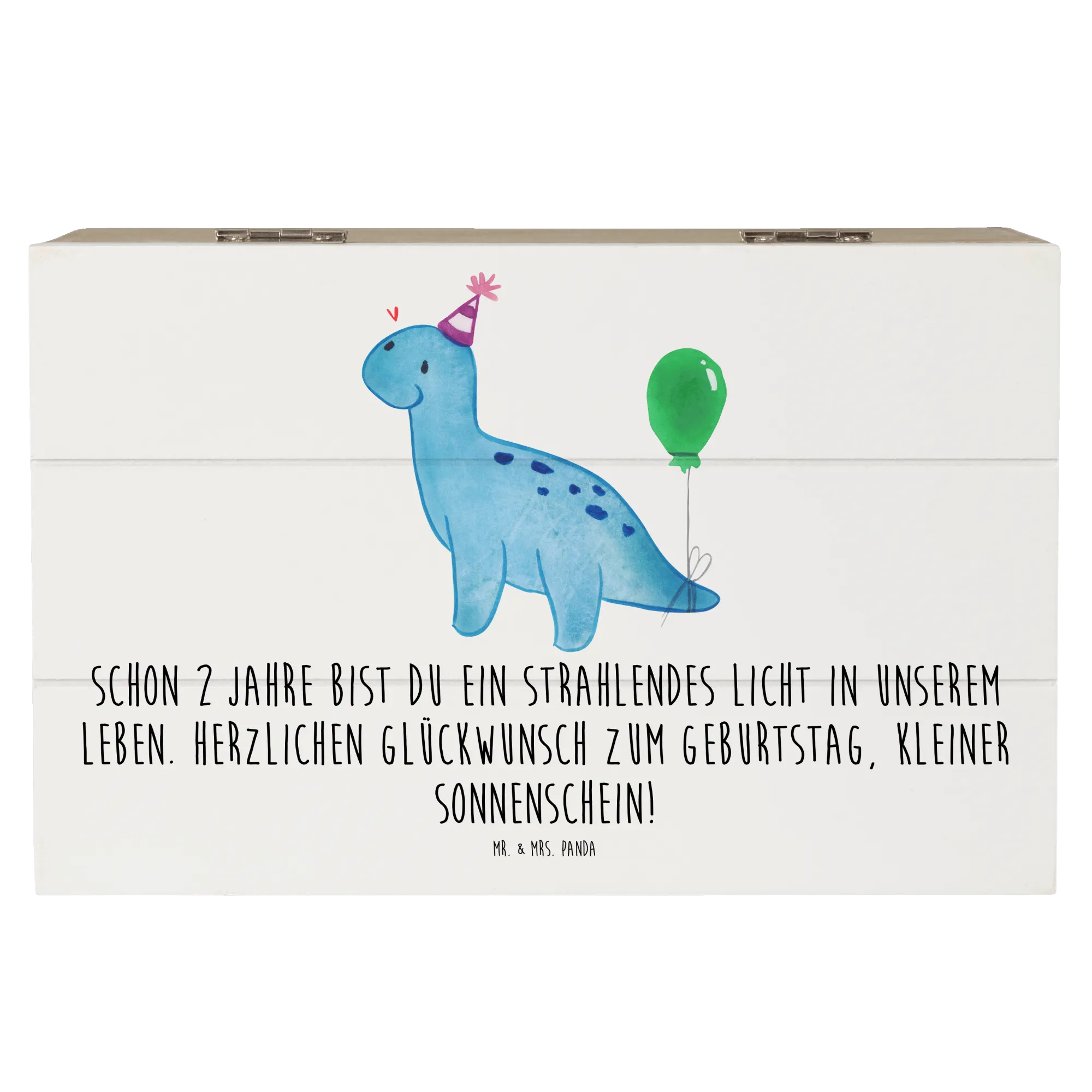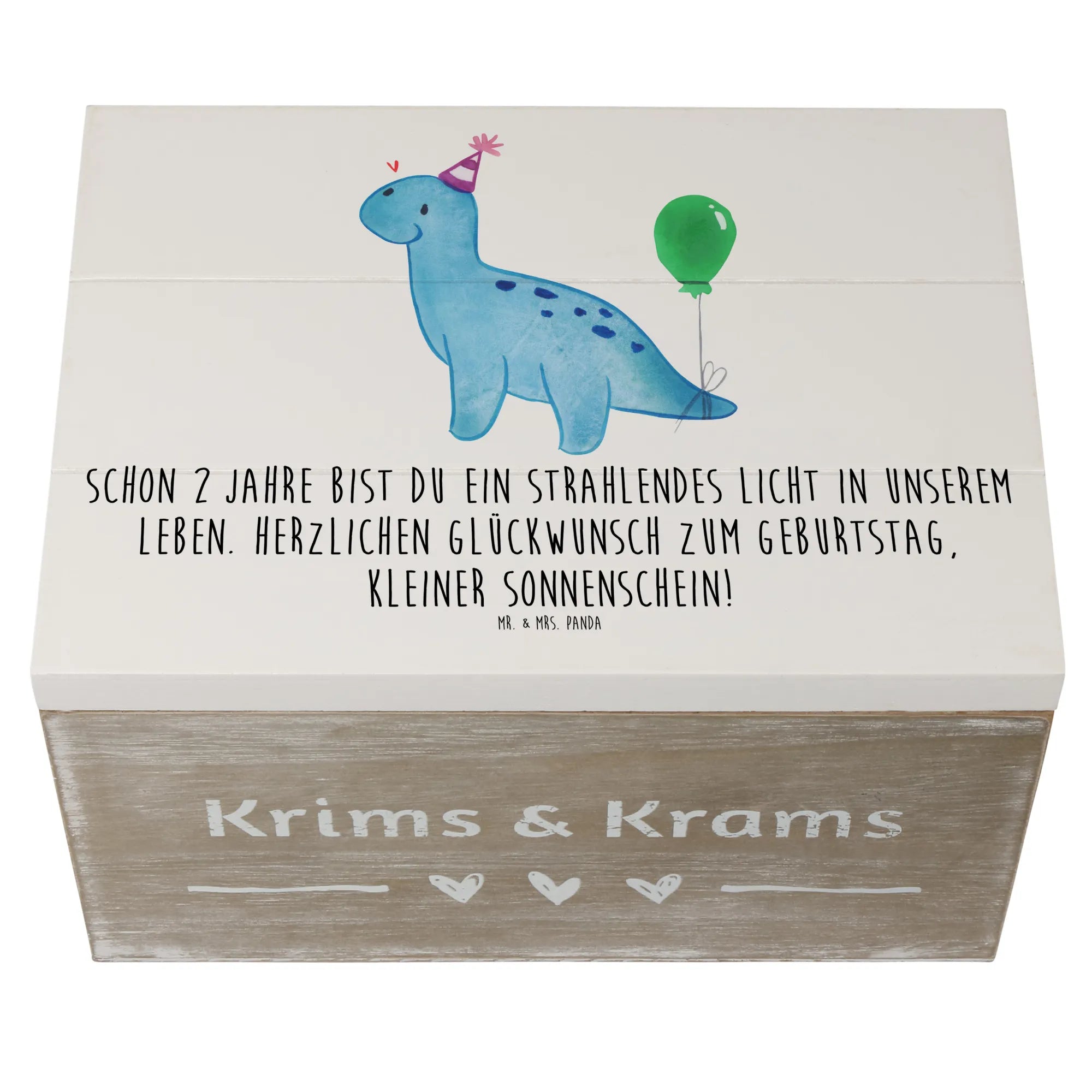 Entdecke die wunderschöne Holzkiste von Mr. & Mrs. Panda, die nicht nur ein Aufbewahrungsort für all deine Schätze ist, sondern auch ein ganz besonderes Geschenk für den 2. Geburtstag. Die Kiste, bedruckt mit dem liebevollen Spruch 'Schon 2 Jahre bist du ein strahlendes Licht in unserem Leben. Herzlichen Glückwunsch zum Geburtstag, kleiner Sonnenschein!', ist nicht nur dekorativ, sondern auch praktisch.