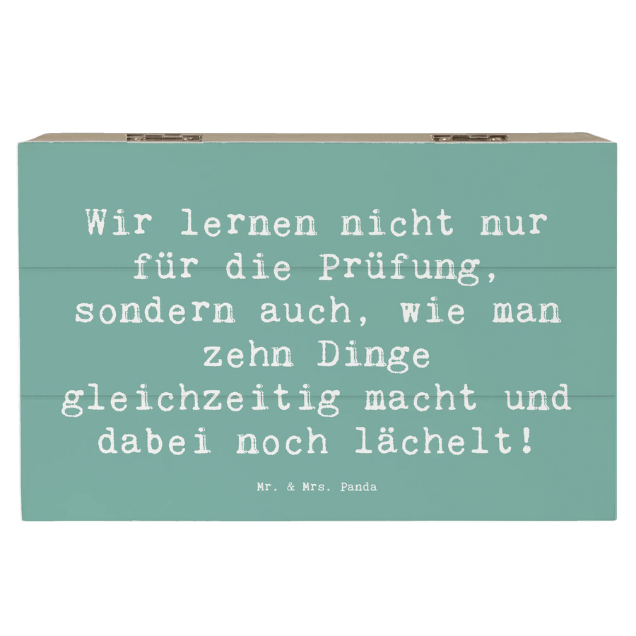 Die wunderschöne Holzkiste von Mr. & Mrs. Panda ist der perfekte Begleiter für alle Auszubildenden. Mit ihrem charmanten Design und dem inspirierenden Spruch "Wir lernen nicht nur für die Prüfung, sondern auch, wie man zehn Dinge gleichzeitig macht und dabei noch lächelt!" zaubert sie jedem ein Lächeln ins Gesicht.