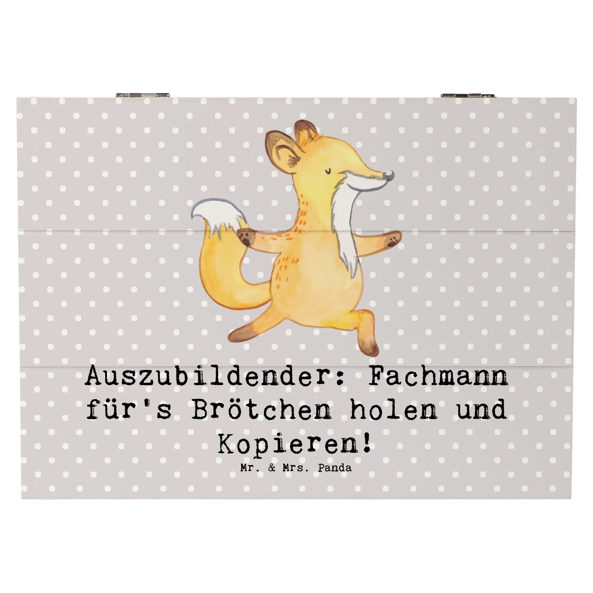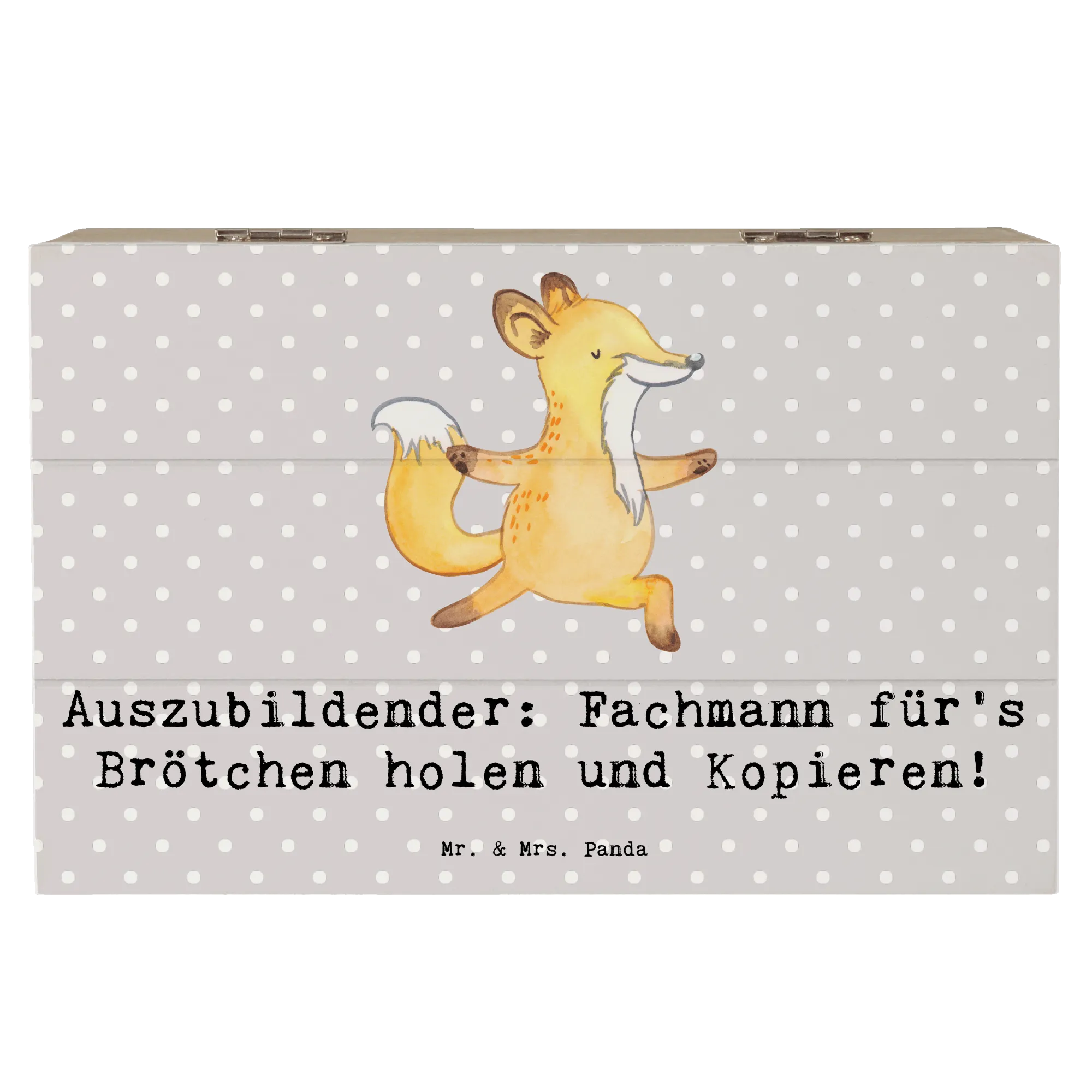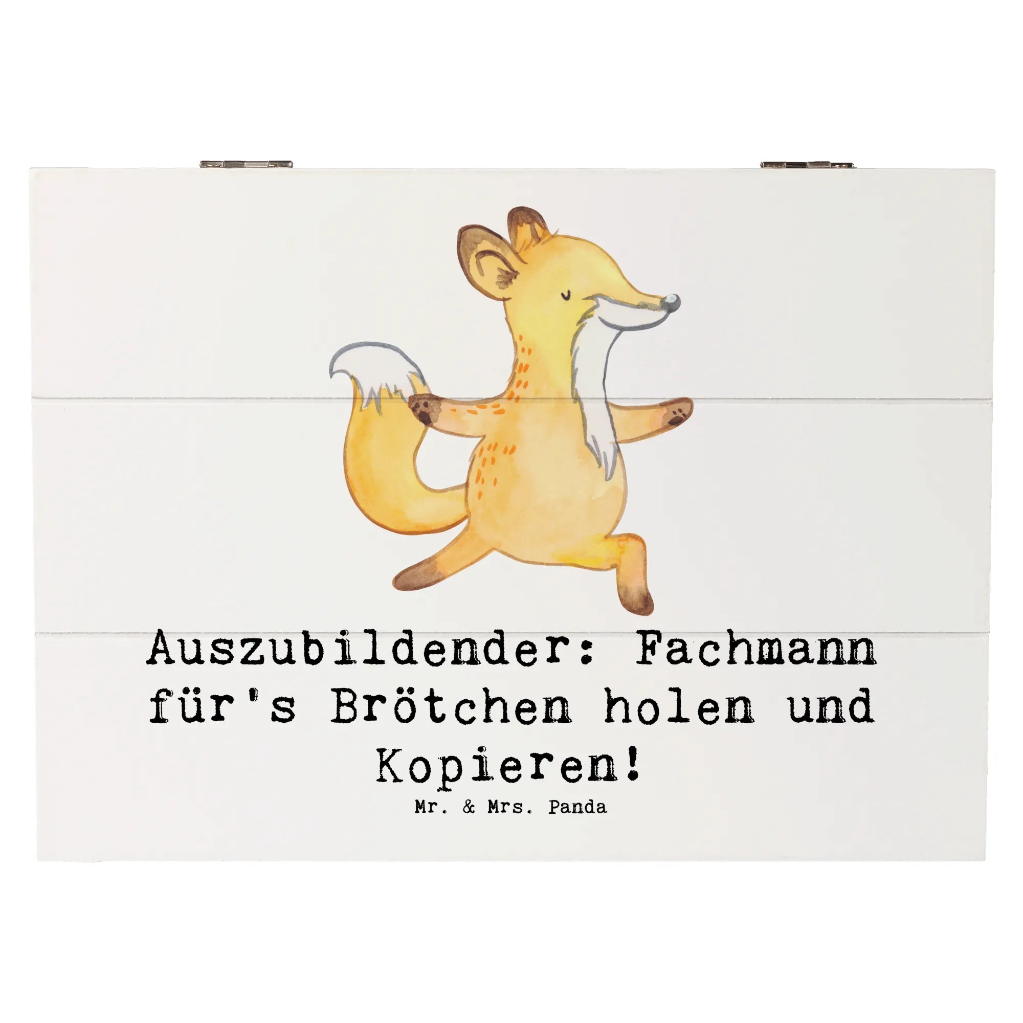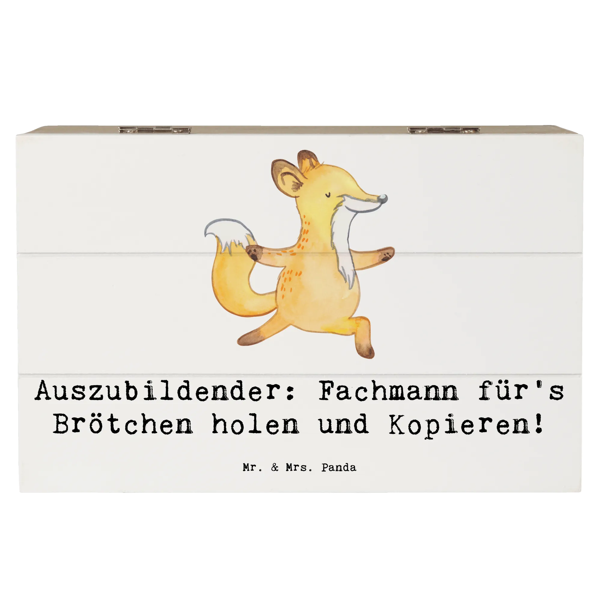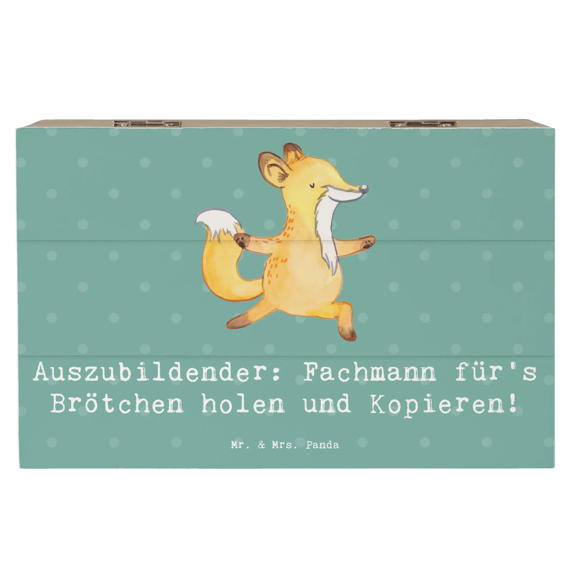 Die Holzkiste "Auszubildender" von Mr. & Mrs. Panda ist das perfekte Geschenk für alle angehenden Fachkräfte. Diese wunderschöne Kiste aus robuster Holzfaser ist nicht nur ein toller Blickfang, sondern auch äußerst funktional. Mit dem humorvollen Slogan "Auszubildender: Fachmann für's Brötchen holen und Kopieren!" bringt sie garantiert ein Lächeln auf die Gesichter der Beschenkten.